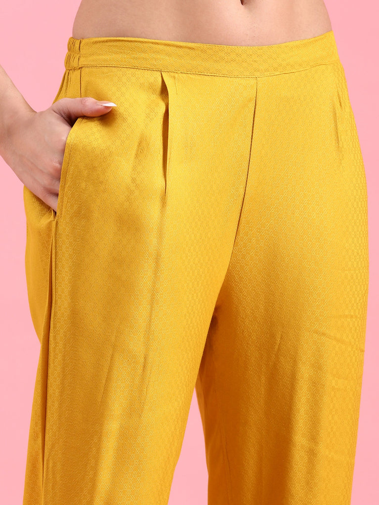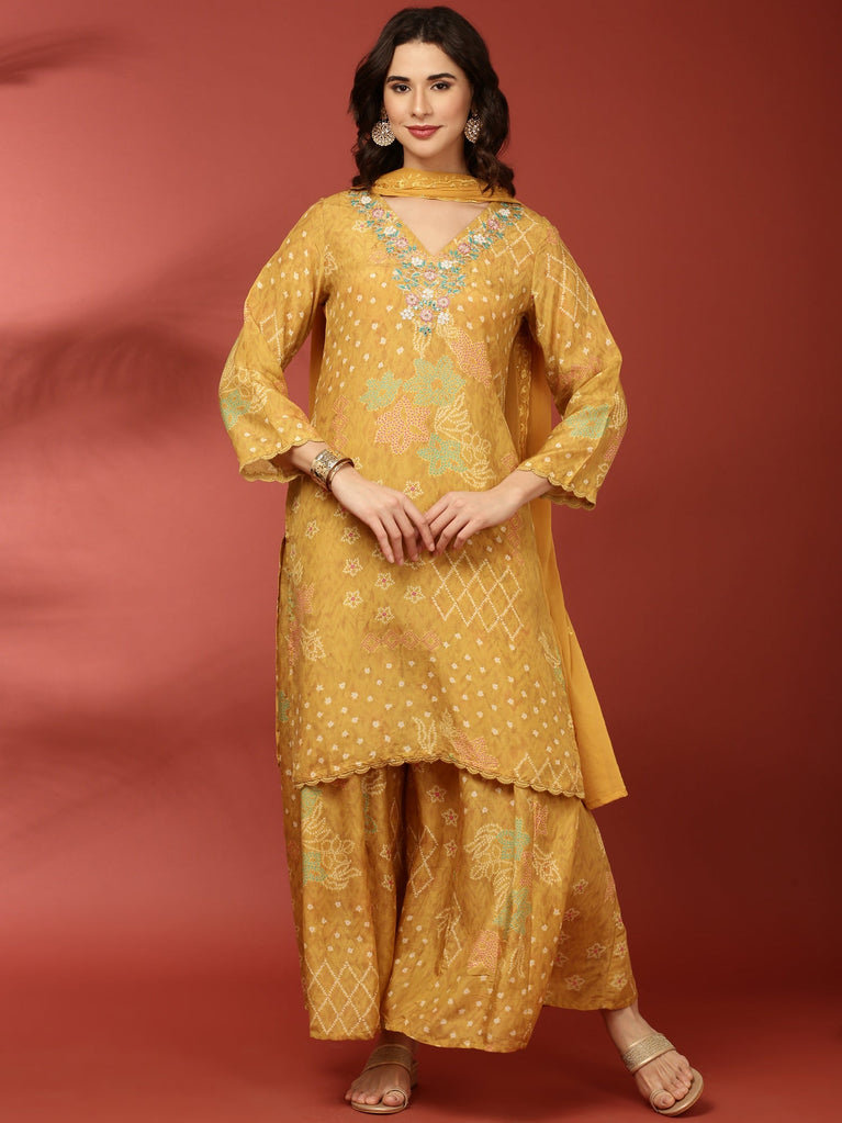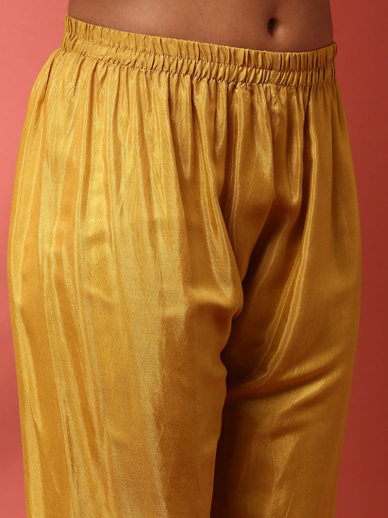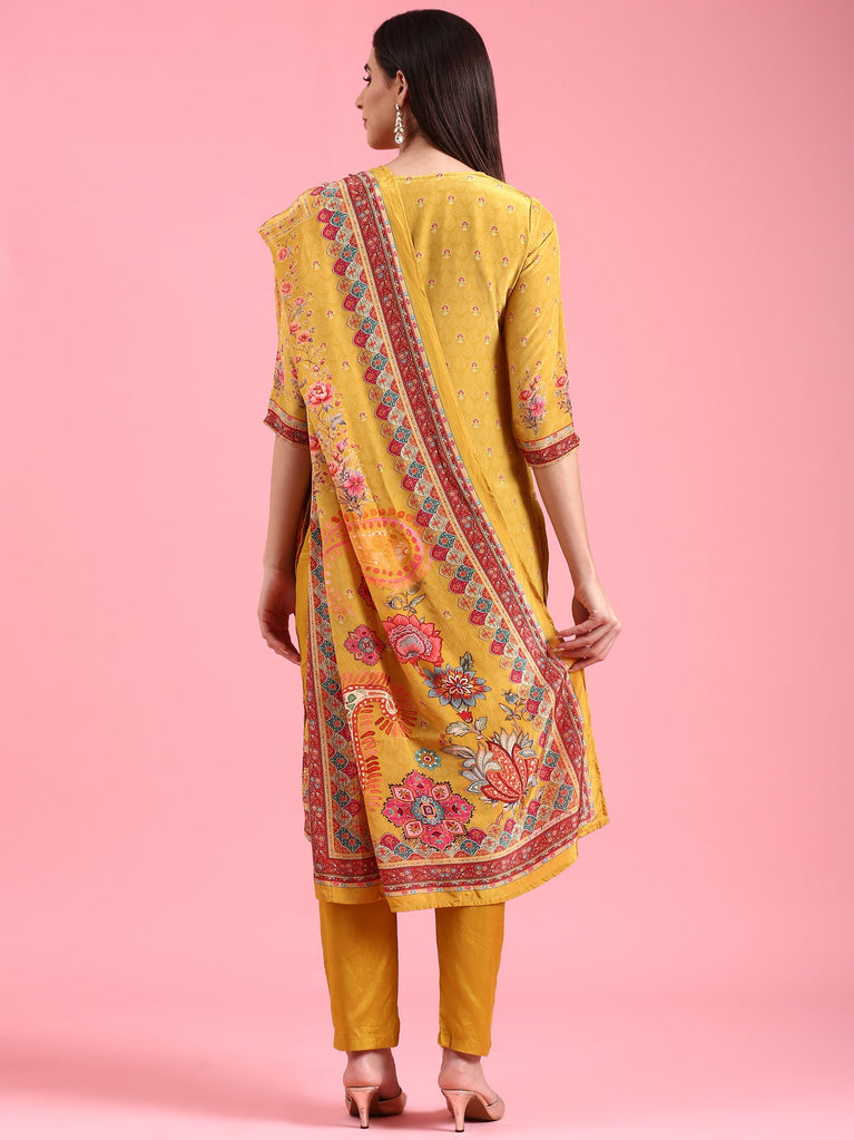 Mustard Crepe Printed Three Piece Set