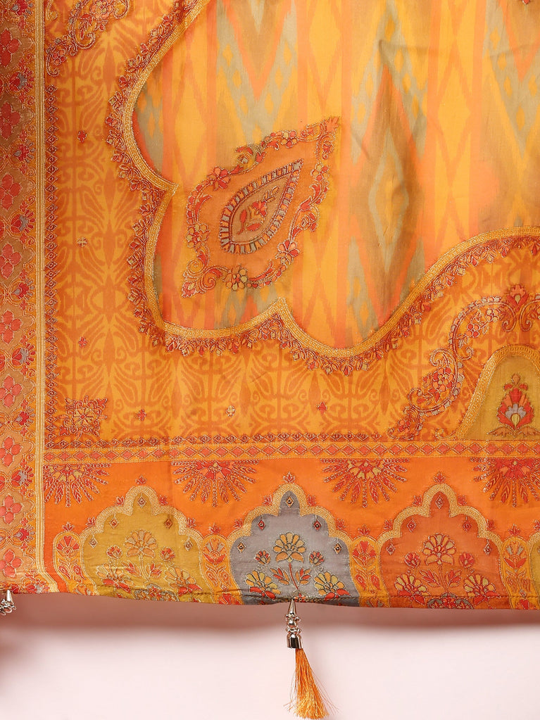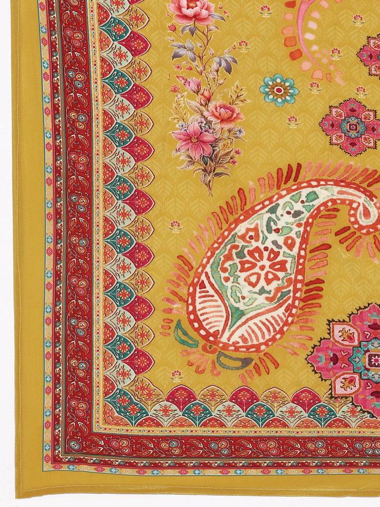 Mustard Dola Silk Floral Digital Print Three Piece Set