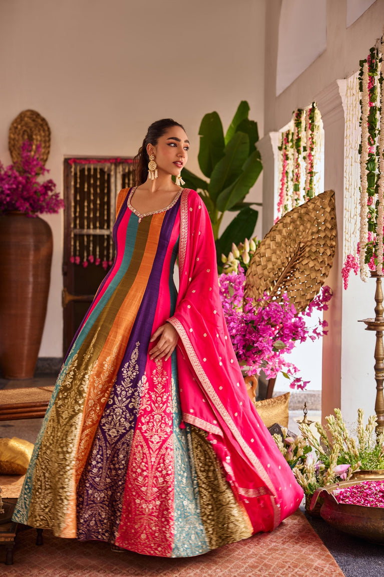 Multi Color Silk Anarkali Three Piece Set