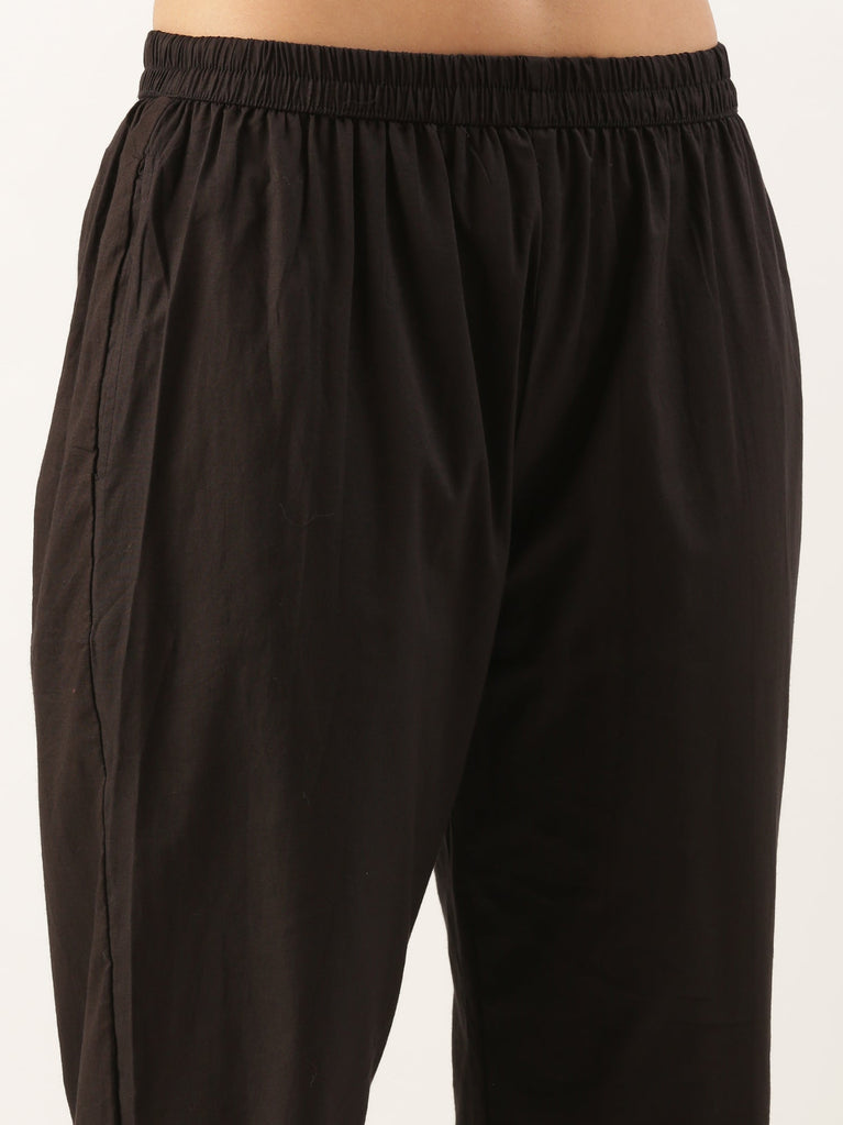 This Black Cotton Printed Three Piece Set combines timeless elegance with comfortable wear. Crafted from soft cotton, it ensures breathability and ease throughout the day. The intricate print adds a refined touch, making it suitable for both casual occasions and stylish gatherings. Designed to provide a cohesive, polished look, this set offers versatility while maintaining a sophisticated appeal.