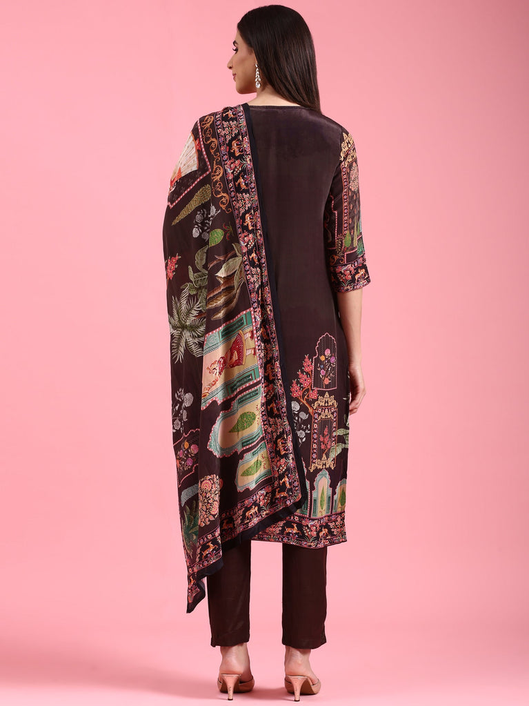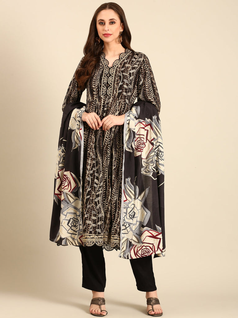 Black Crepe Hand Embroidery Three Piece Suit Set