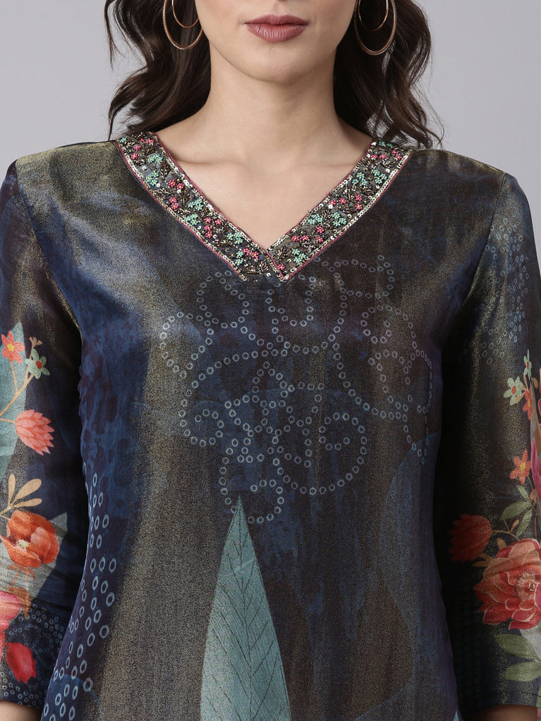 Embrace elegance with this blue silk printed anarkali paired with matching palazzo pants in a graceful three-piece set. The flowing anarkali enhances your silhouette while the comfortable palazzo adds ease to your movement. Perfect for festive occasions, this set combines traditional charm with modern comfort, making you feel confident and radiant wherever you go.