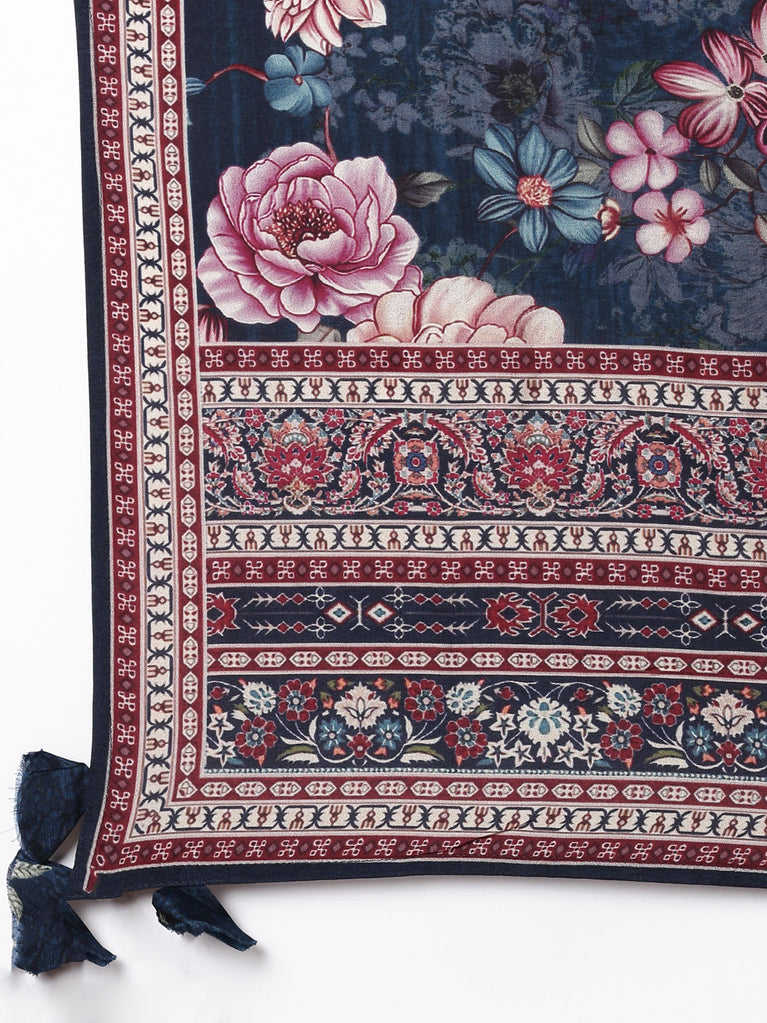 Elevate your wardrobe with this Blue Muslin Printed A-Line Three Piece Set, crafted for effortless elegance. The breathable muslin fabric ensures comfort, while the delicate print adds a subtle charm. Its A-line silhouette flatters every figure, making it perfect for both casual and formal occasions. This versatile set combines style and grace, allowing you to make a sophisticated statement with ease.