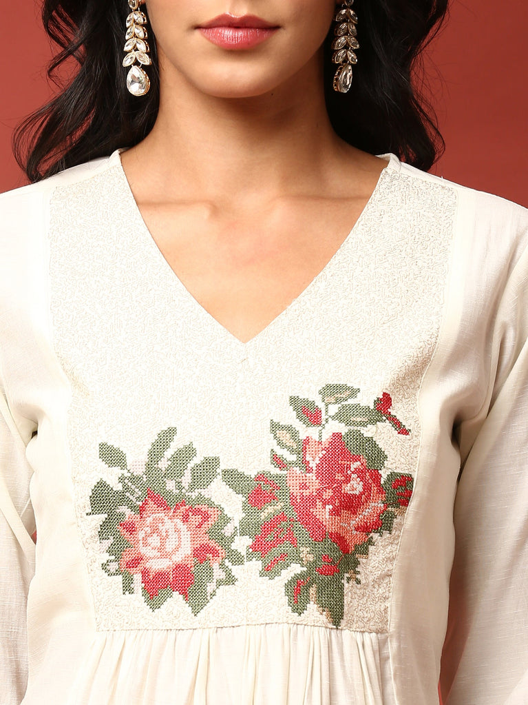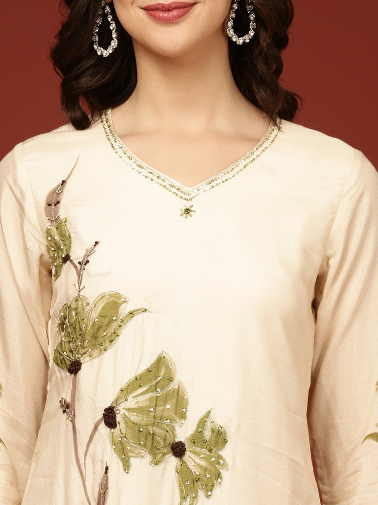 Elevate your ethnic wardrobe with this exquisite cream silk three-piece ensemble, meticulously crafted with intricate hand embroidery. Each piece showcases traditional artistry combined with luxurious silk fabric, offering unparalleled comfort and sophistication. Perfect for weddings, festivals, and special occasions, this set brings timeless elegance to your collection. The delicate embroidered details catch light beautifully, ensuring you stand out with grace and refinement. Invest in quality craftsmanship that celebrates cultural heritage while delivering contemporary style.