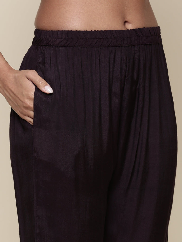 Elevate your wardrobe with this sophisticated Dark Purple Muslin Three Piece Set, crafted from premium muslin fabric renowned for its breathability and comfort. This versatile ensemble features three coordinated pieces designed to work seamlessly together or styled individually for multiple occasions.