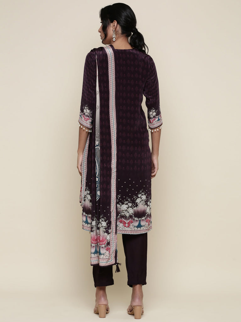 The Deep Wine Digital Printed Three-Piece Suit Set combines sophisticated design with intricate digital printing on rich deep wine fabric. This expertly crafted set includes a kurta, matching bottoms, and a coordinating dupatta, each piece tailored for a flattering fit and all-day comfort. Ideal for festive and formal occasions, the digital print adds depth and visual interest, enhancing the timeless appeal of traditional attire with a contemporary edge. Perfect for those seeking elegance and style in one complete ensemble.