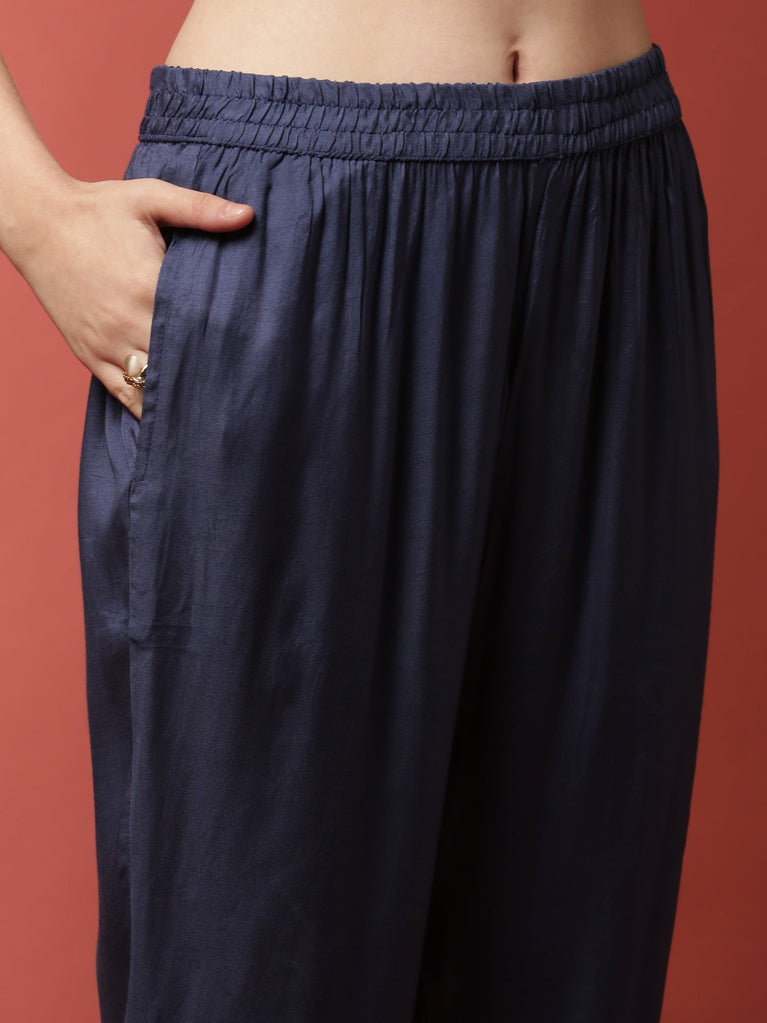 Elevate your ethnic wardrobe with this stunning grey crepe palazzo set, meticulously crafted with hand-embroidered beads and stones. The intricate embellishments create a sophisticated, eye-catching design perfect for festive occasions, weddings, or special celebrations. The flowing palazzo silhouette offers comfort without compromising on elegance, while the premium crepe fabric drapes beautifully.