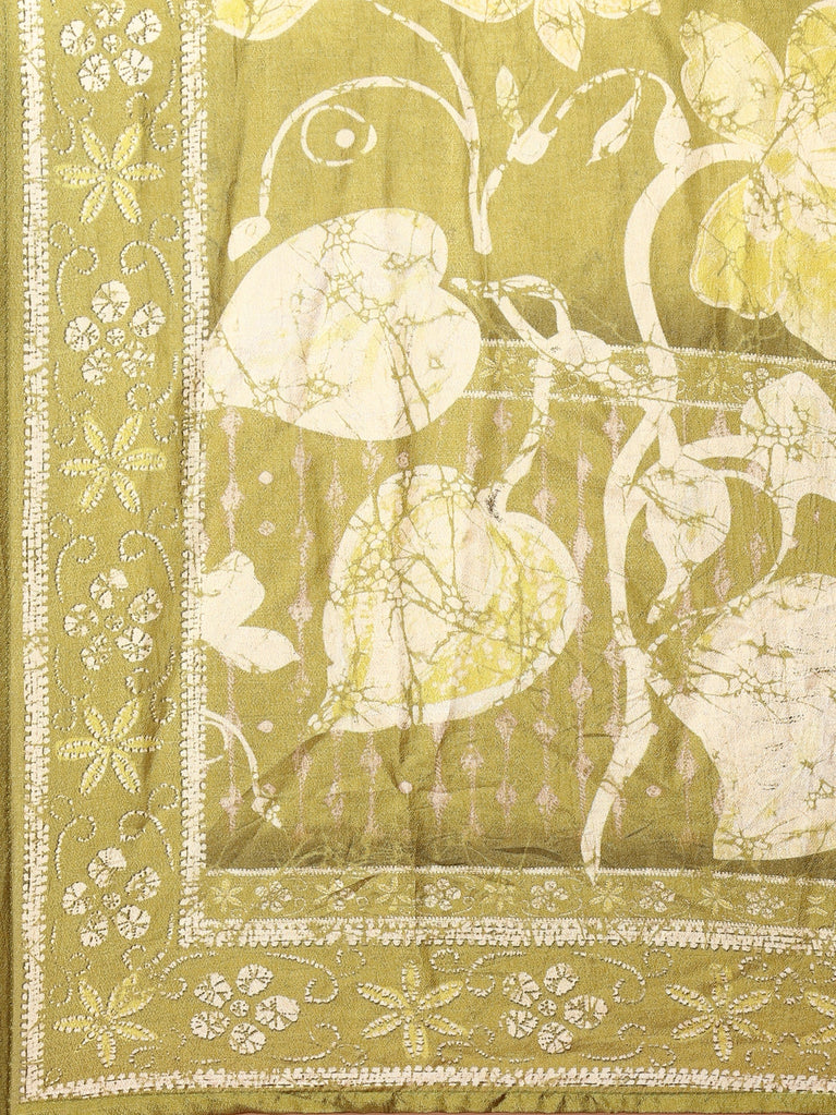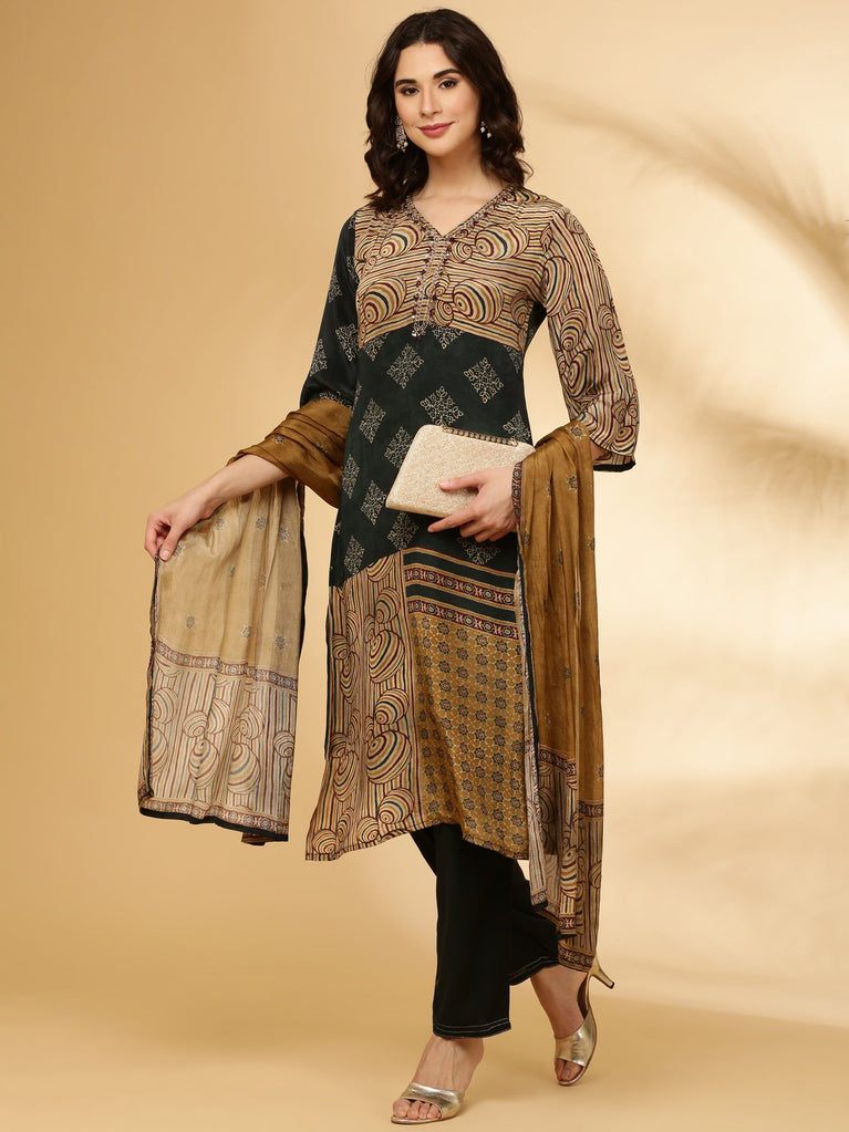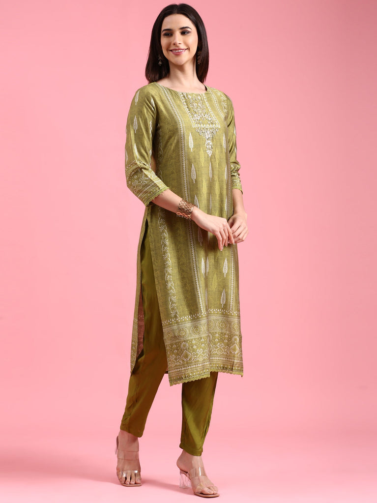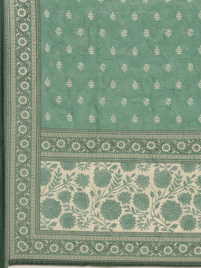 Green Tissue Printed Embroidery Three Piece Suit Set