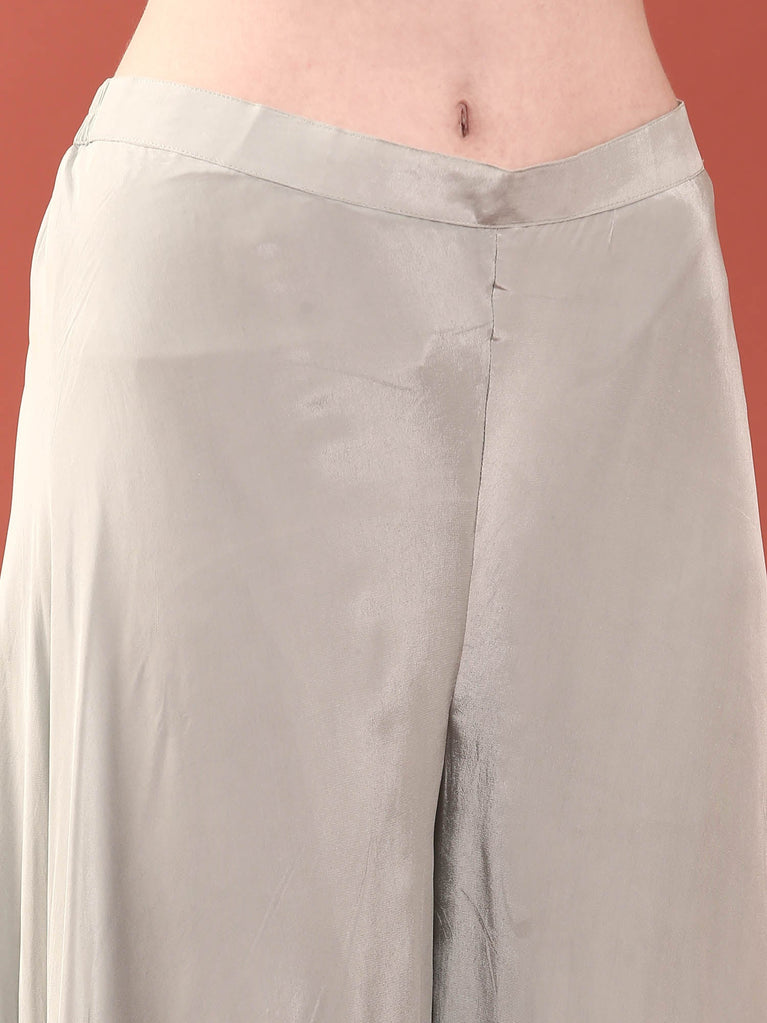 Grey Crepe With Beads And Stones Hand Embroidered Palazzo Set