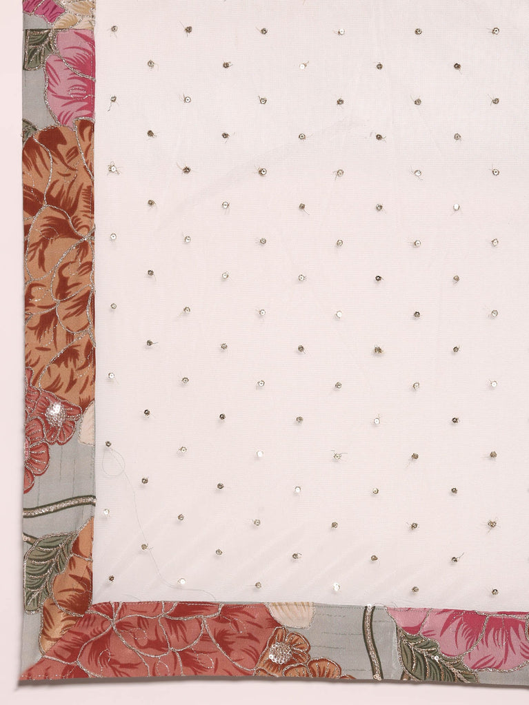 Elevate your wardrobe with this Grey Crepe Printed Three Piece Set, designed for effortless sophistication. Crafted from soft crepe fabric, it offers a comfortable fit and graceful drape. Featuring elegant prints, the set includes a top, coordinating bottoms, and a matching dupatta, creating a polished, cohesive look perfect for both formal occasions and refined everyday wear.