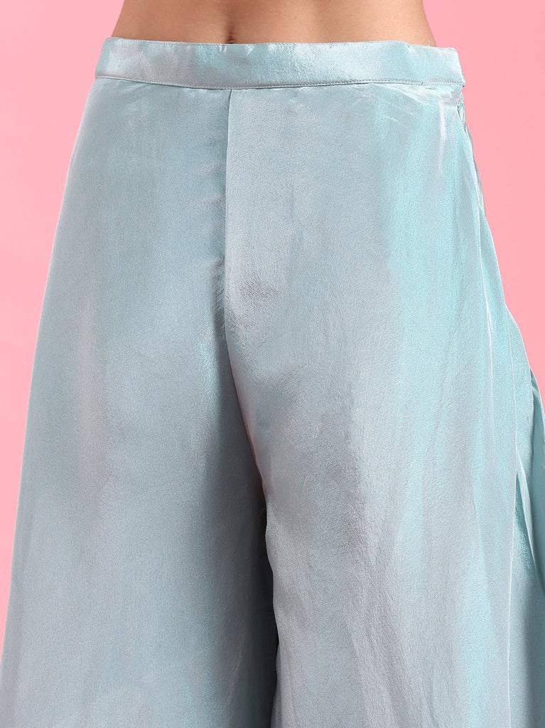 Ice Blue Banaras Silk Embroidery Peplum Palazzo