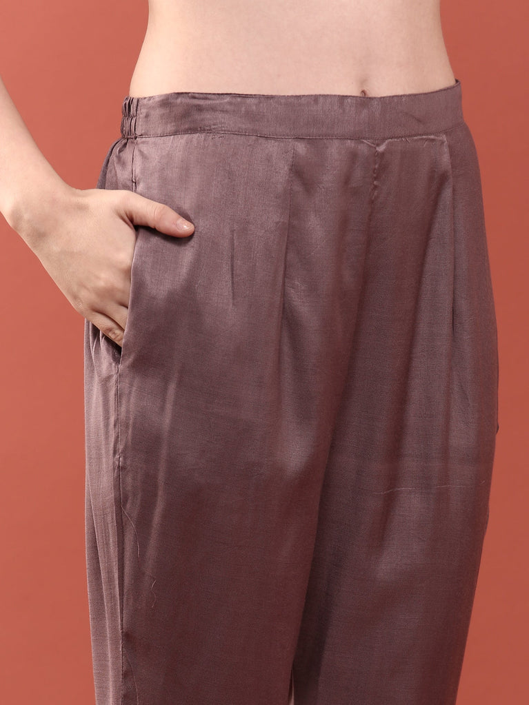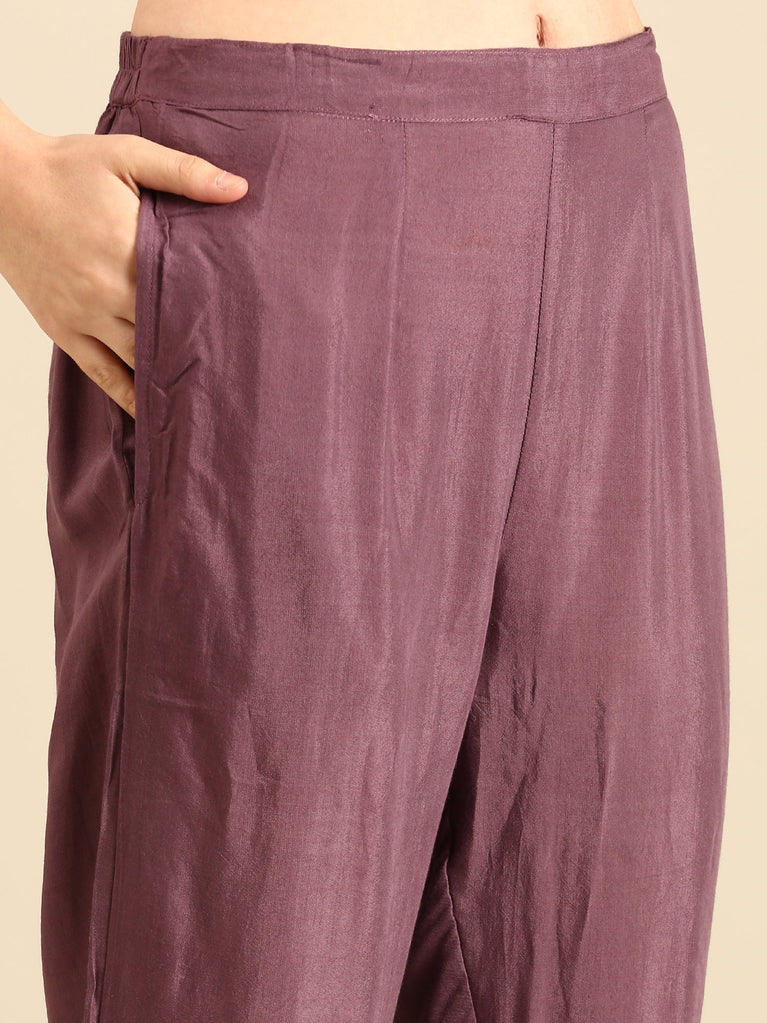 Lavender Viscose Embroidery Three Piece Suit Set