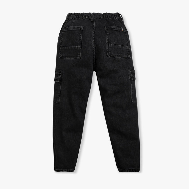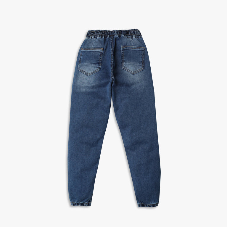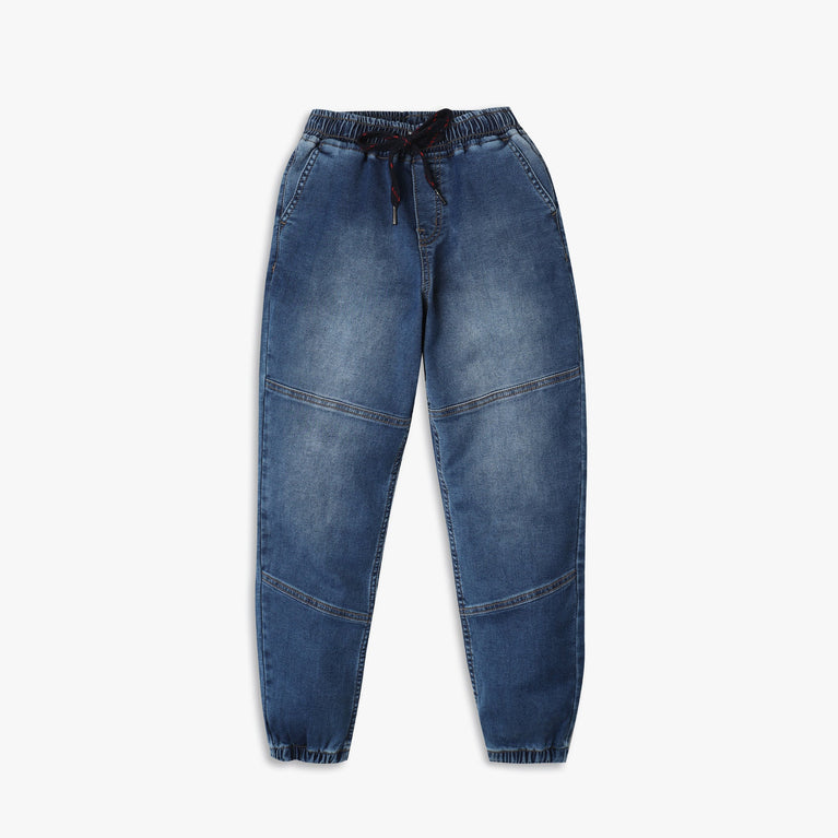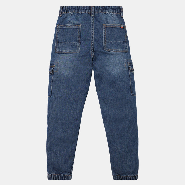 These denim jogger theme, cut and sew pattern regular fit joggers has mid rise waist. Made from cotton, your kid's feel comfortable wearing the product.