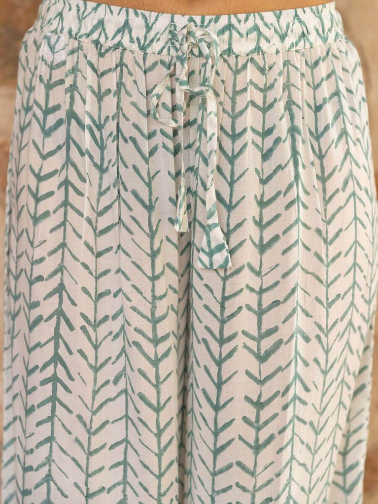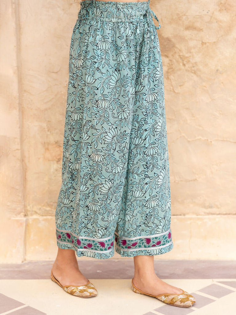 Green Floral Cotton Palazzo