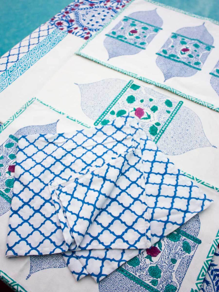 Gul Jaal Block Printed Cotton Table Napkins