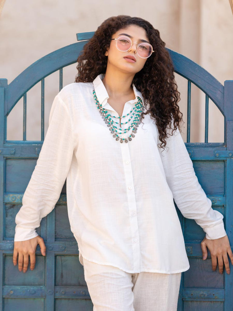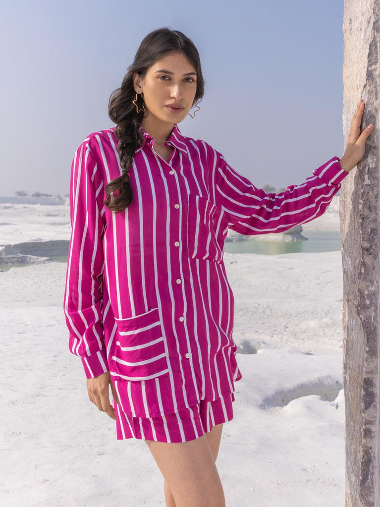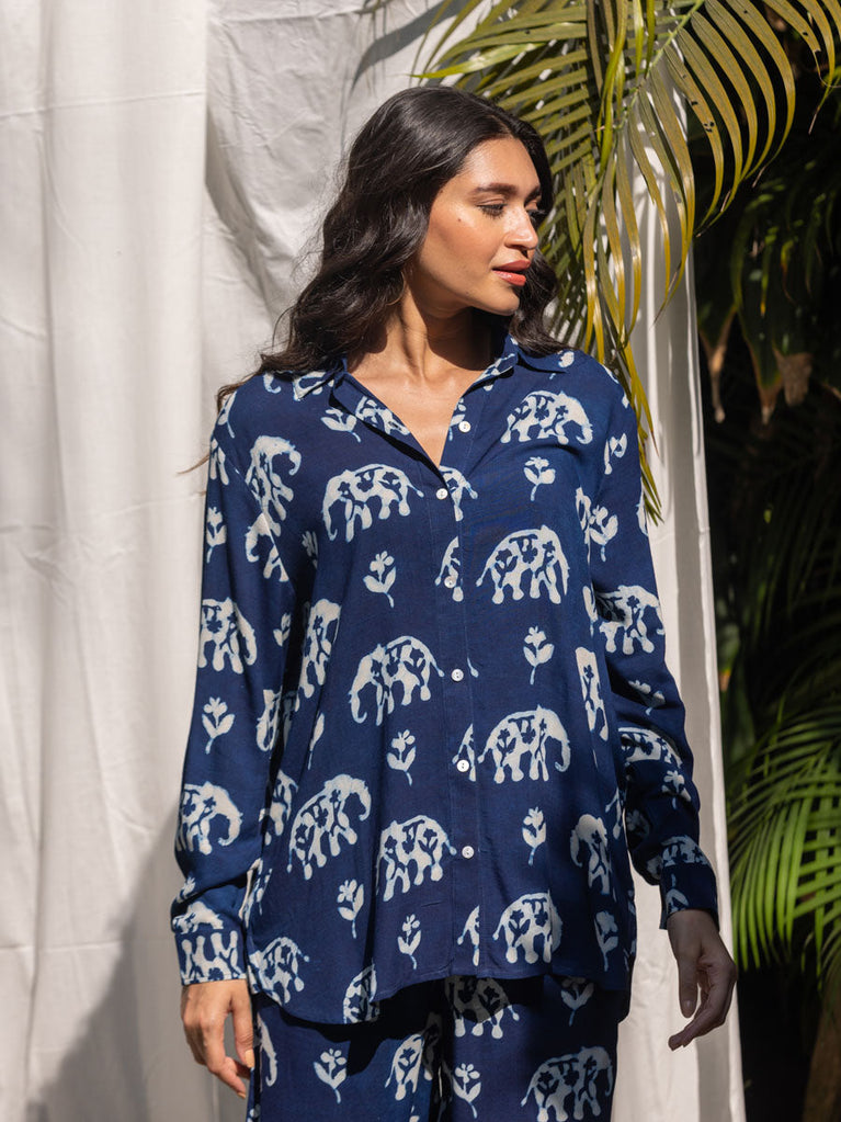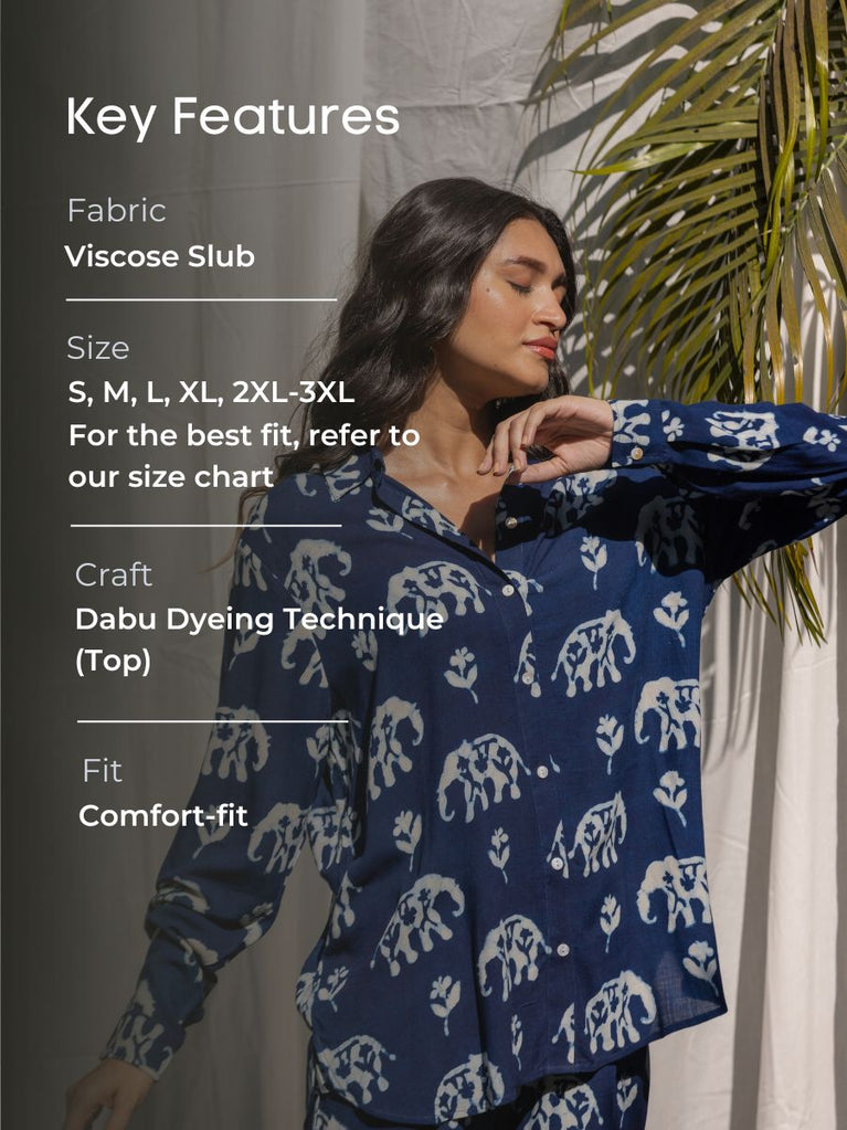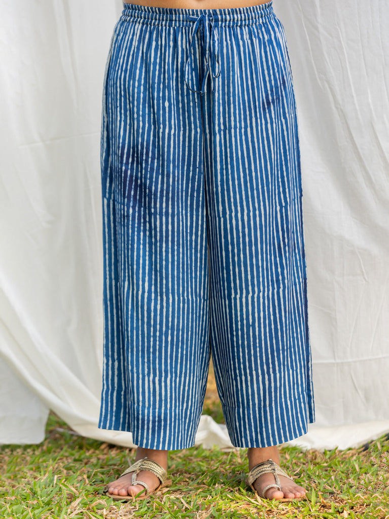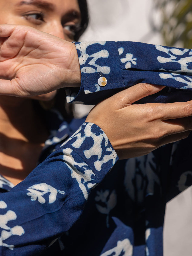 Indigo Stripes Dabu Kaftan Cotton Shirt Dress