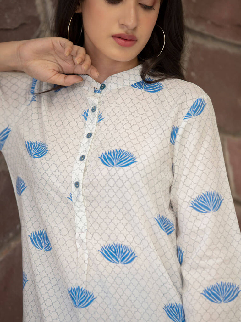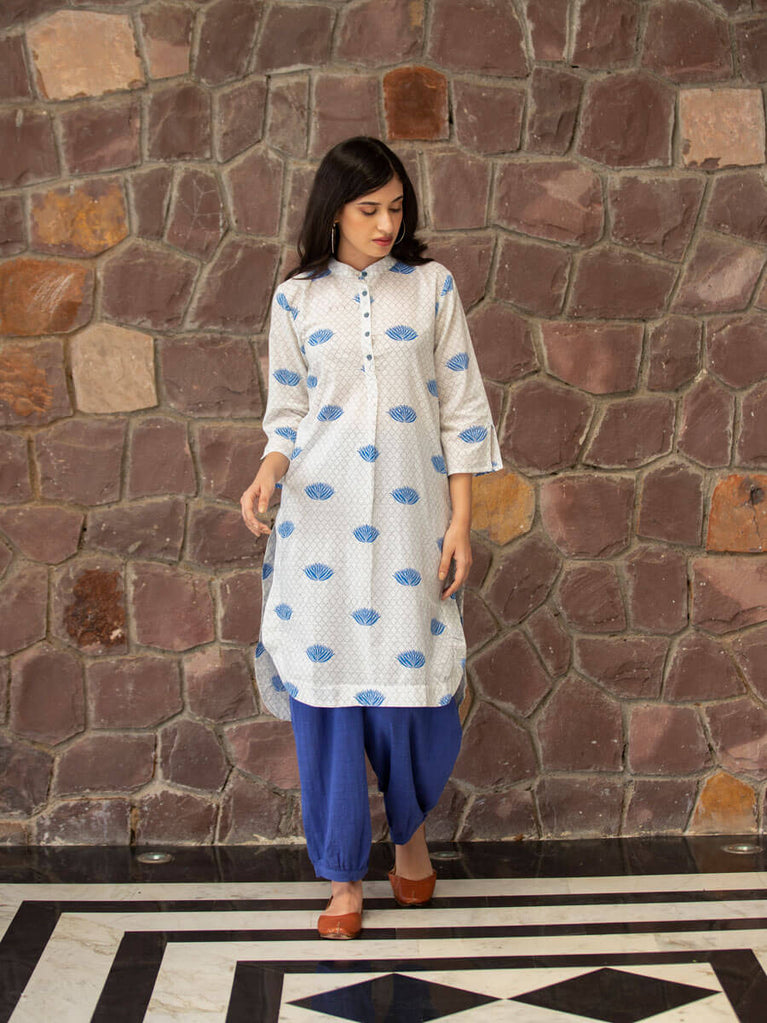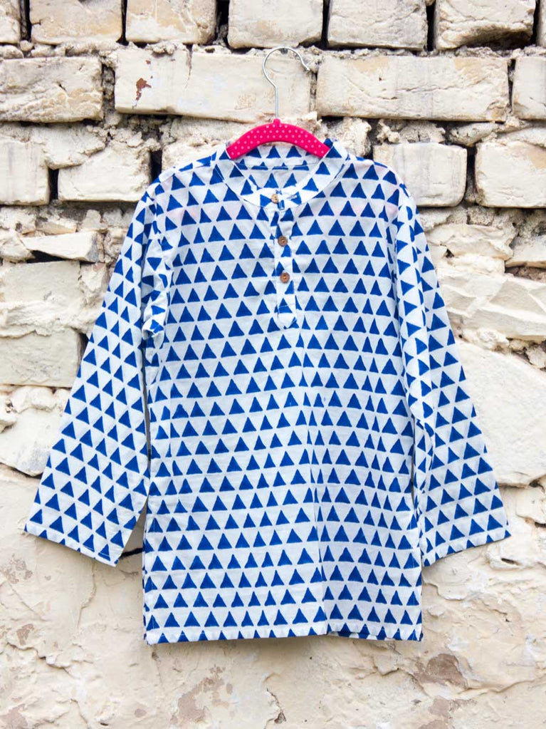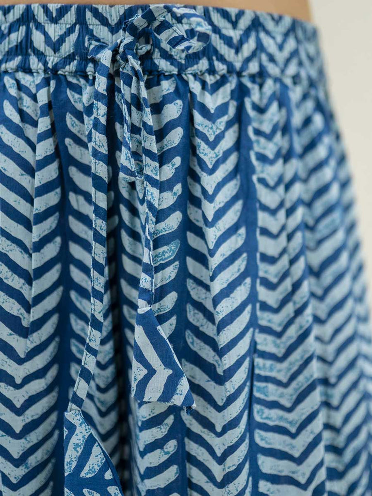 Indigo Polka PinTuck Block Printed Cotton Frock