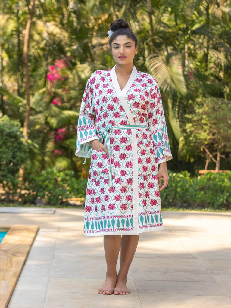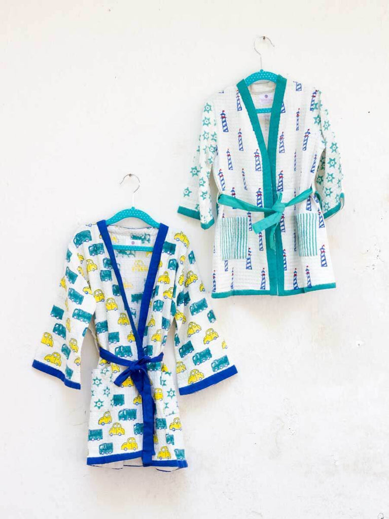 Lighthouse Magic Block Printed Waffle Cotton Bath Robe