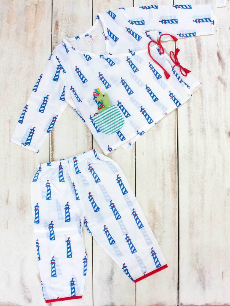Lighthouse Magic Block Printed Cotton Top & Pyjama Set