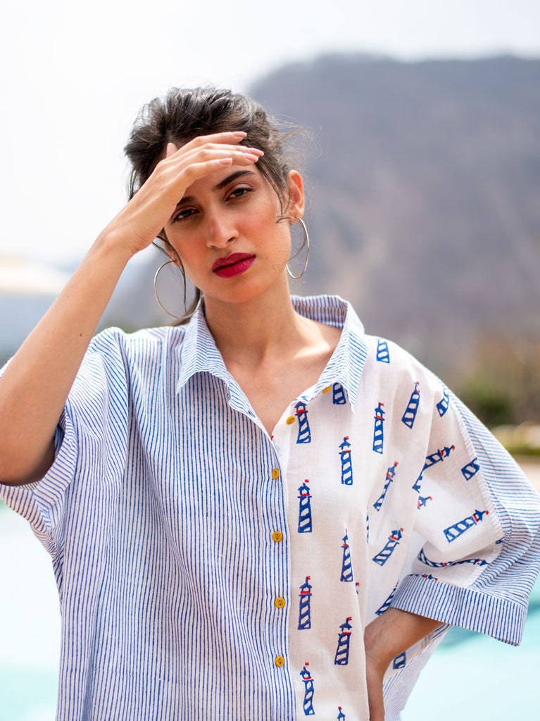 Lighthouse Over-Sized Asymmetrical Cotton Long Shirt