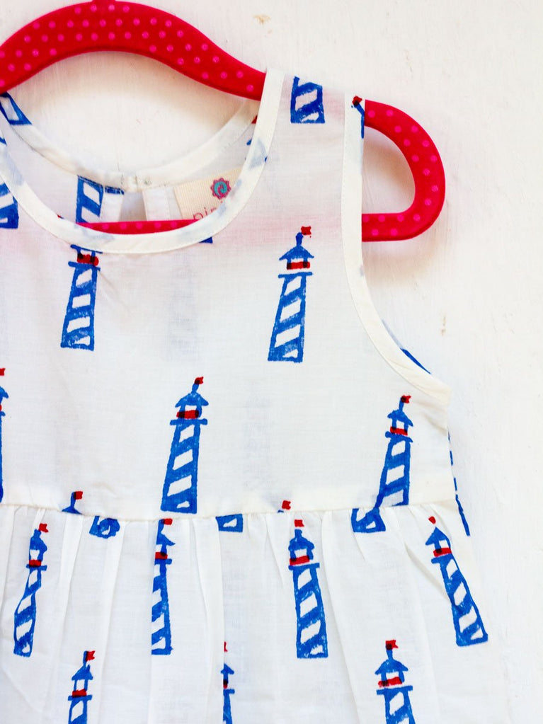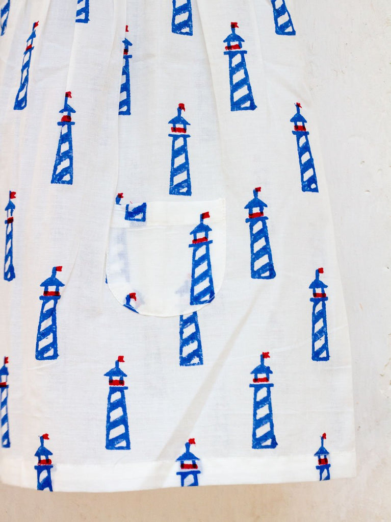 Lighthouse Organic Cotton Block Printed Dress with a Pocket