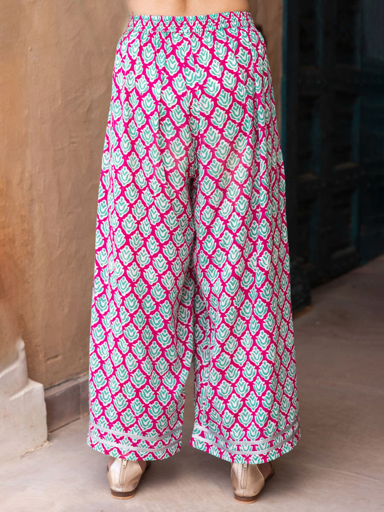 Pink Floral Paradise Hand Block Printed Palazzo Pants