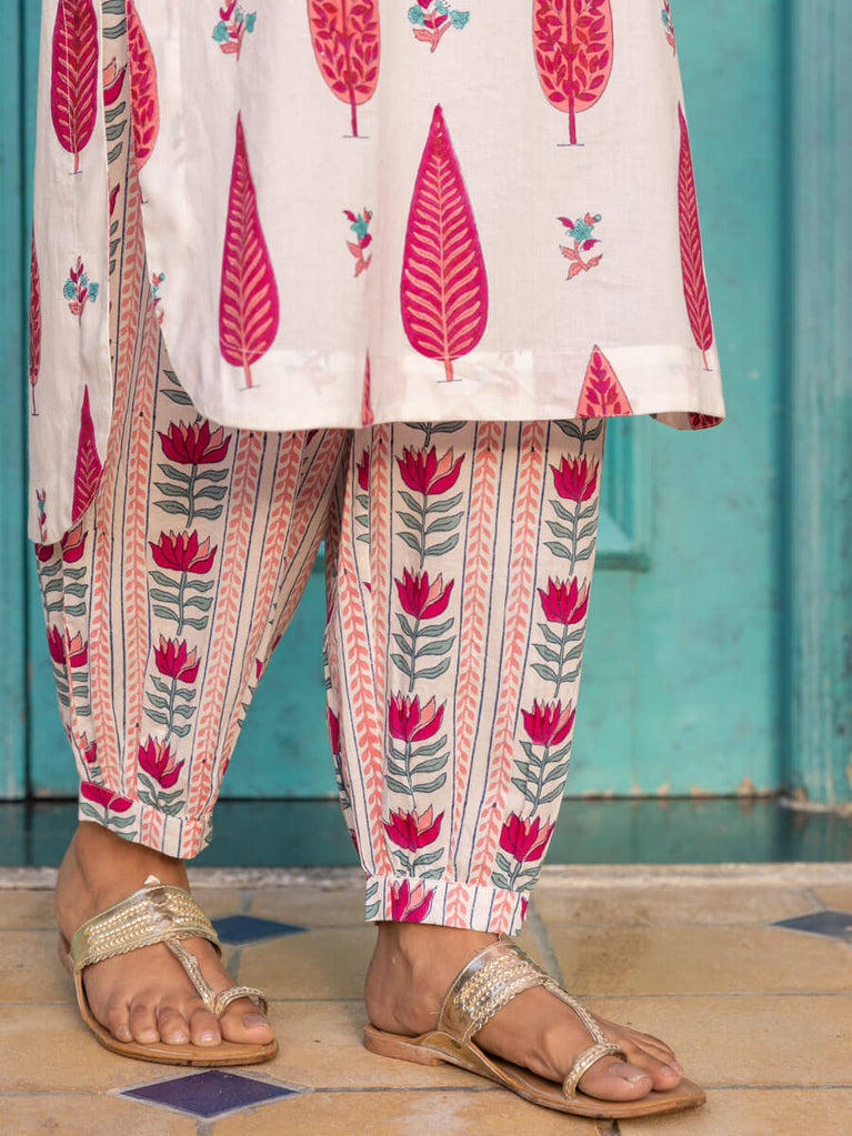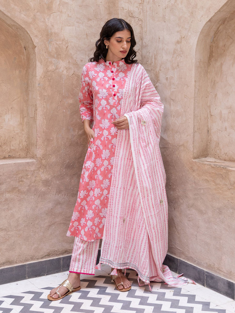 Pink Blossom Organic Cotton Block Printed Angrakha Set