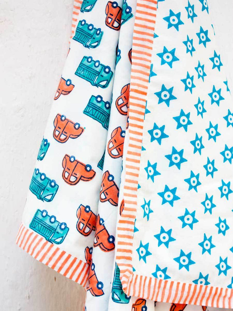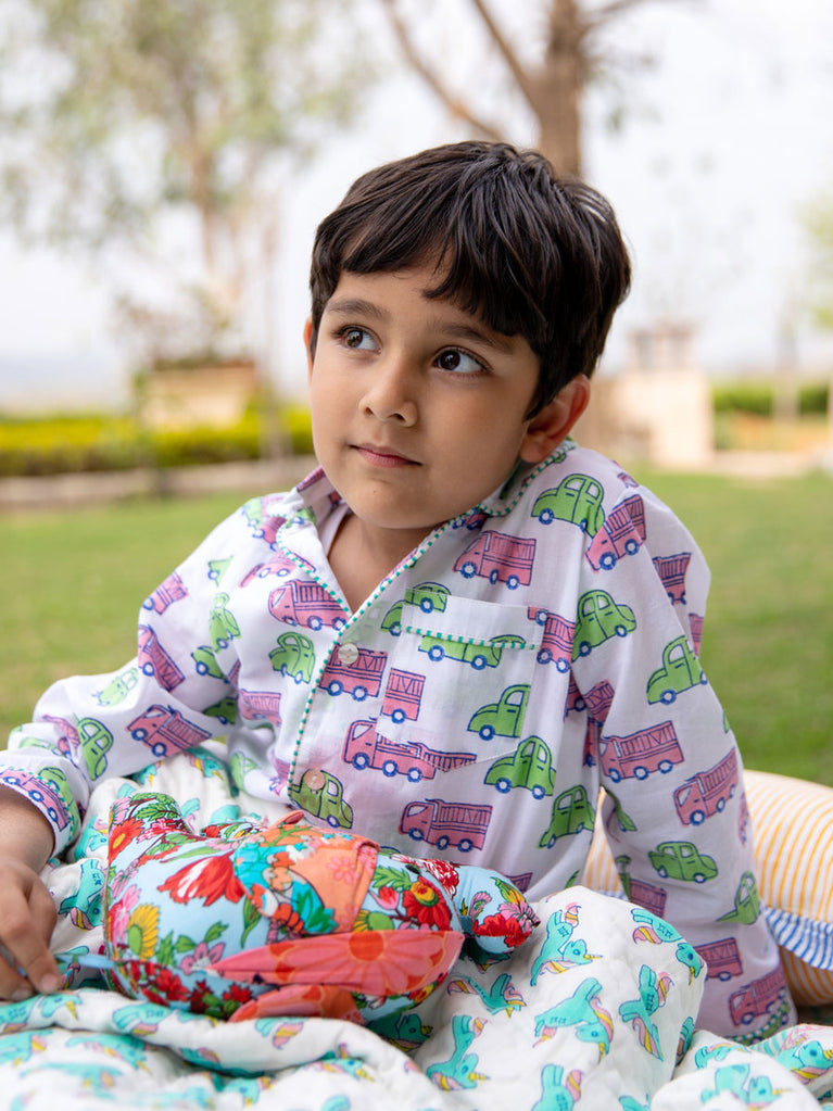 Vroom Vroom Block Printed Cotton Top & Pyjama Set