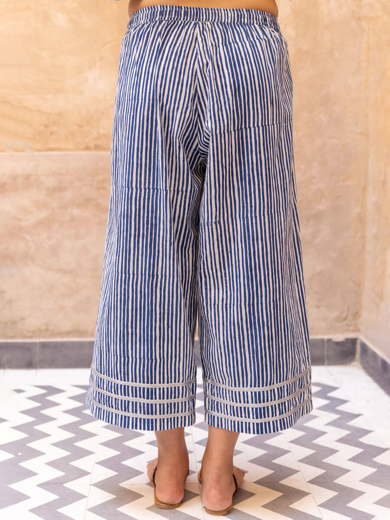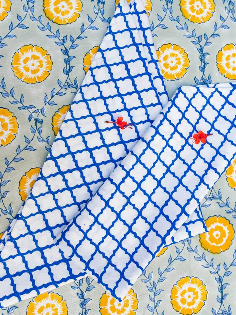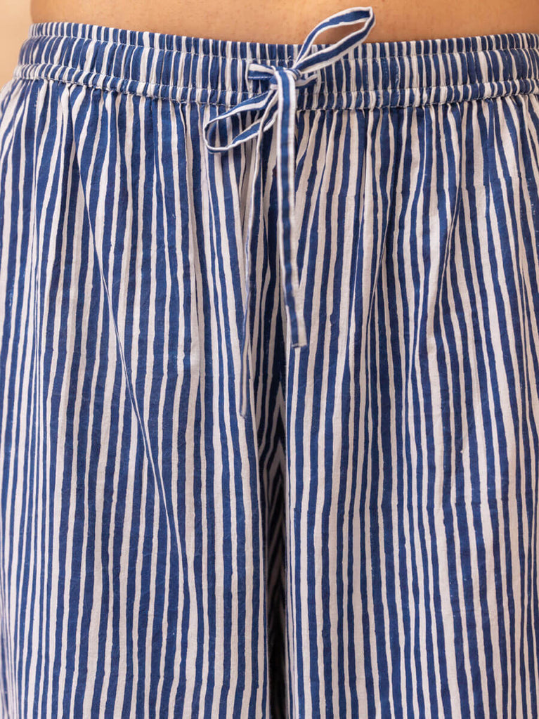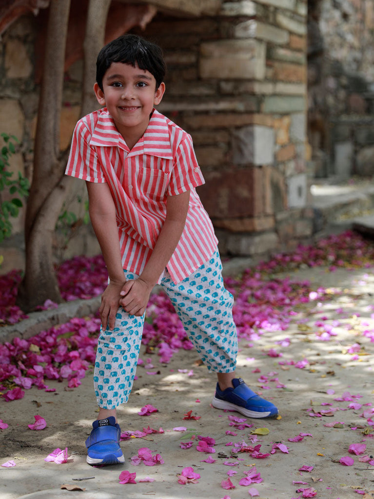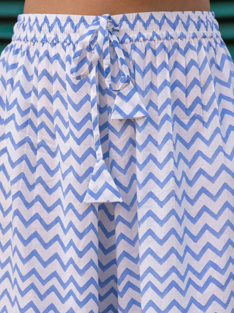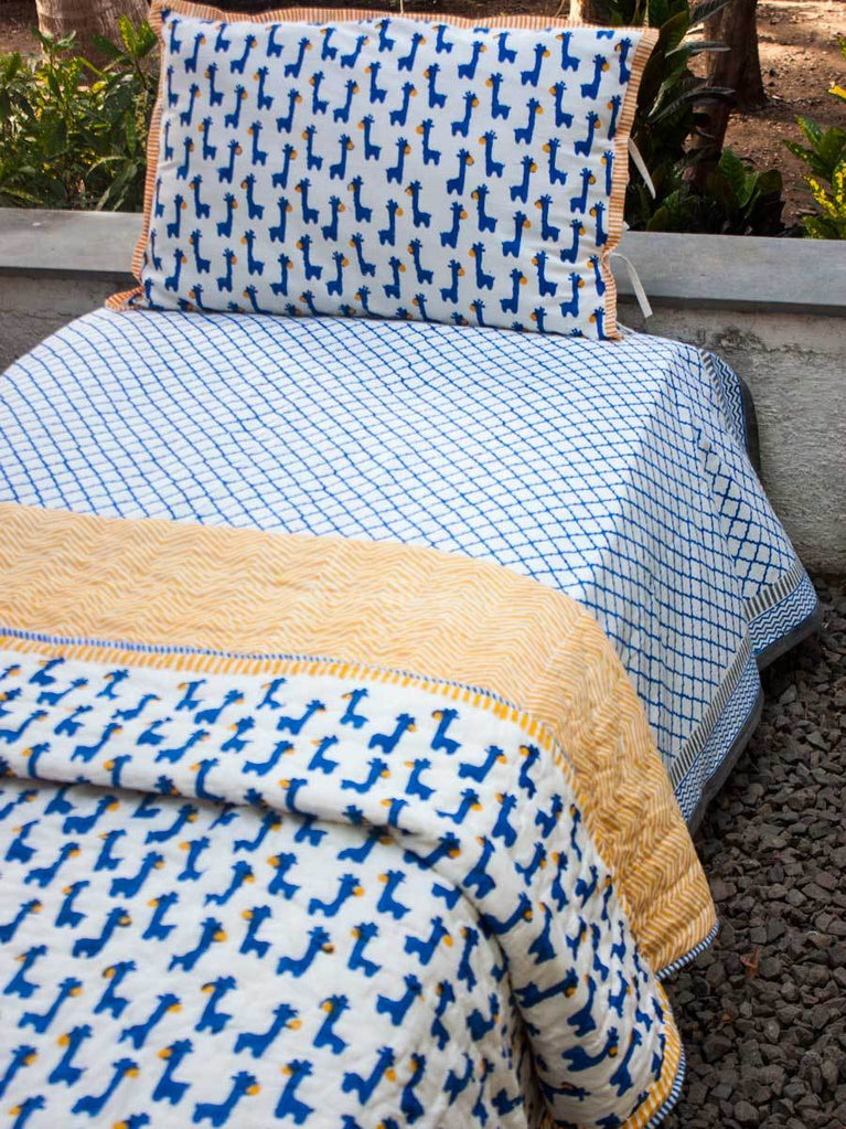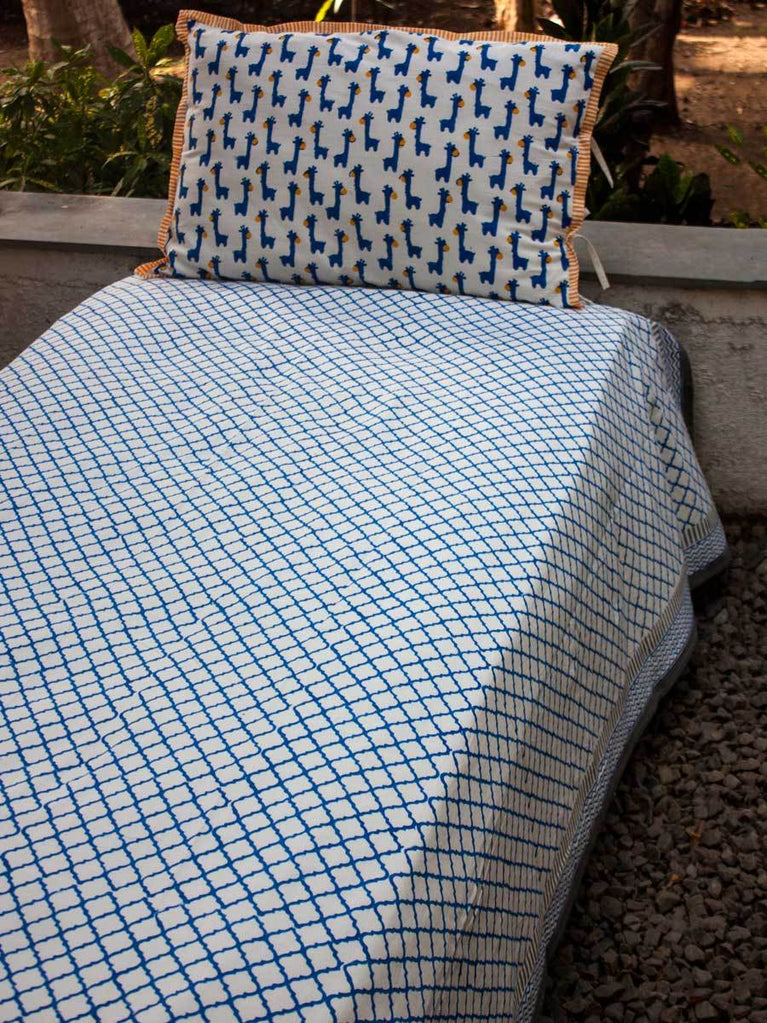 Blue Giraffe Block Printed Cotton Top & Pyjama Set