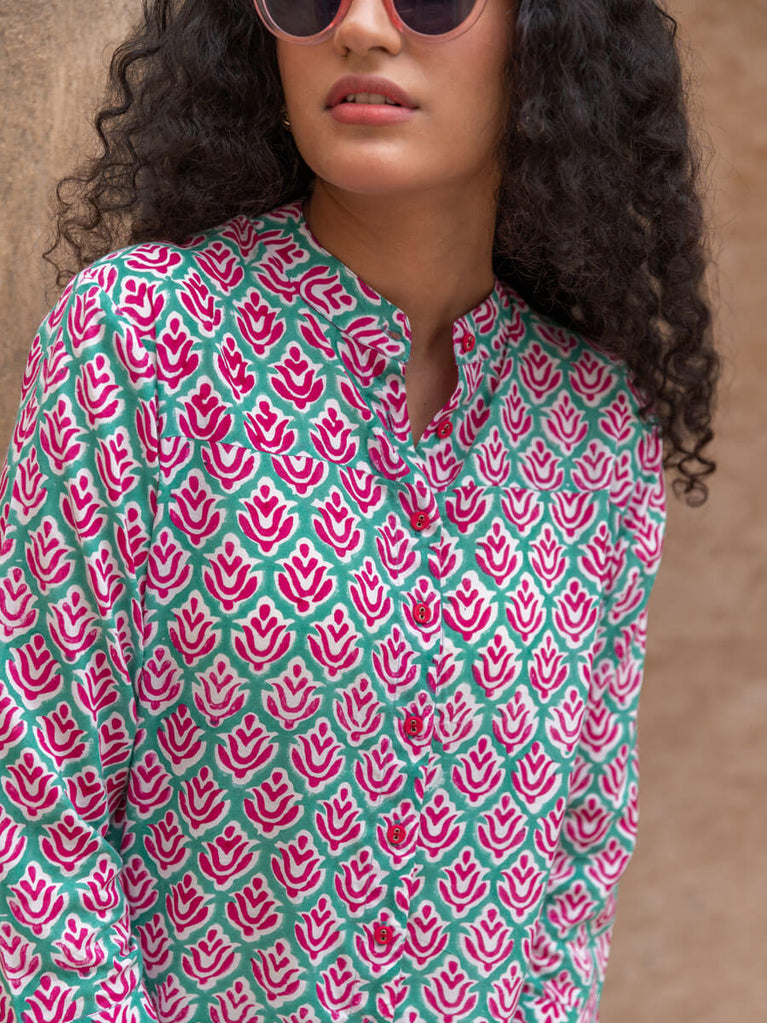 Blue Lighthouse Organic Cotton Block Printed Shirt