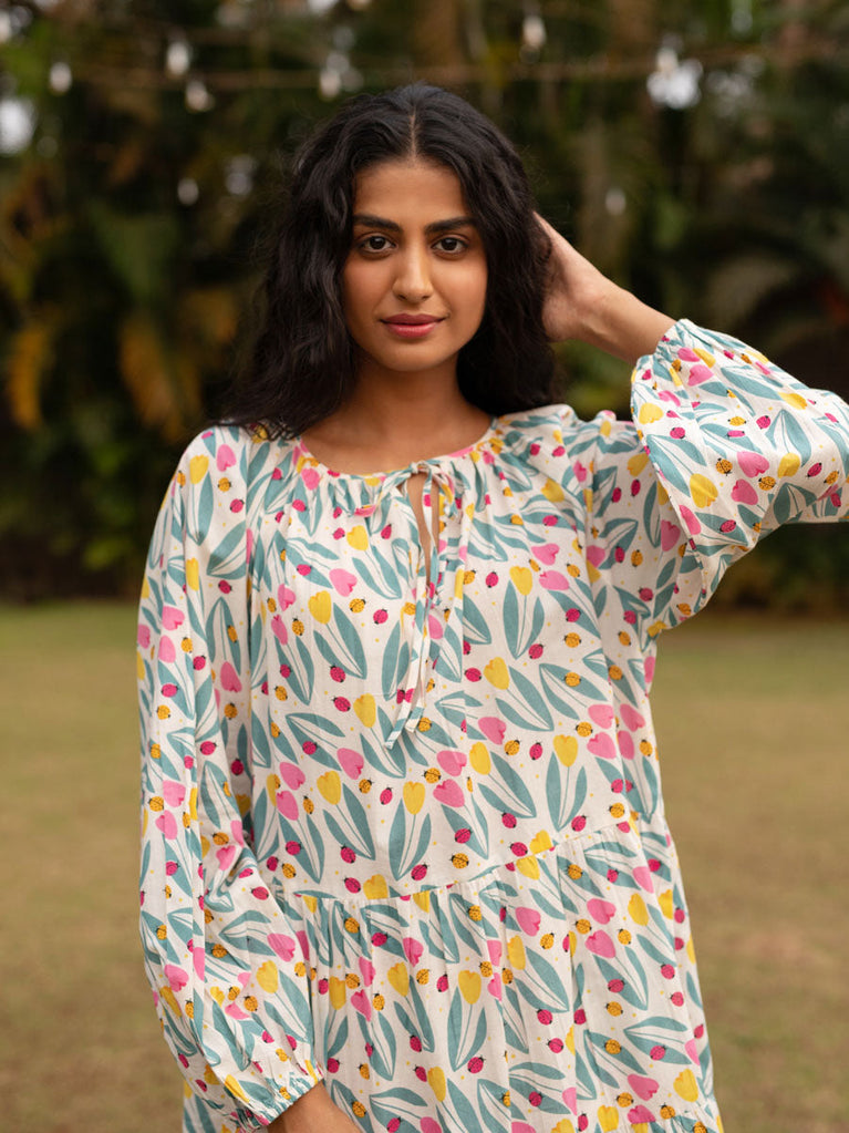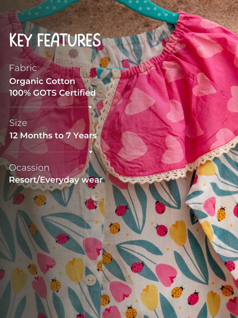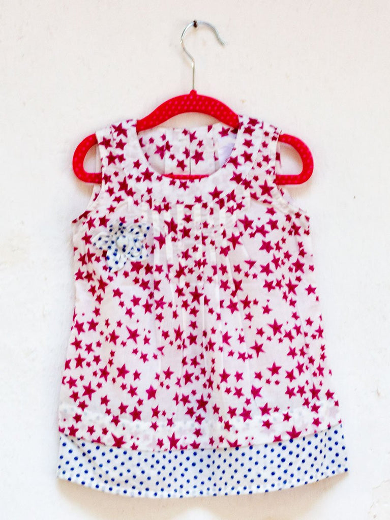 Deep Pink Starry Sky PinTuck Block Printed Cotton Frock