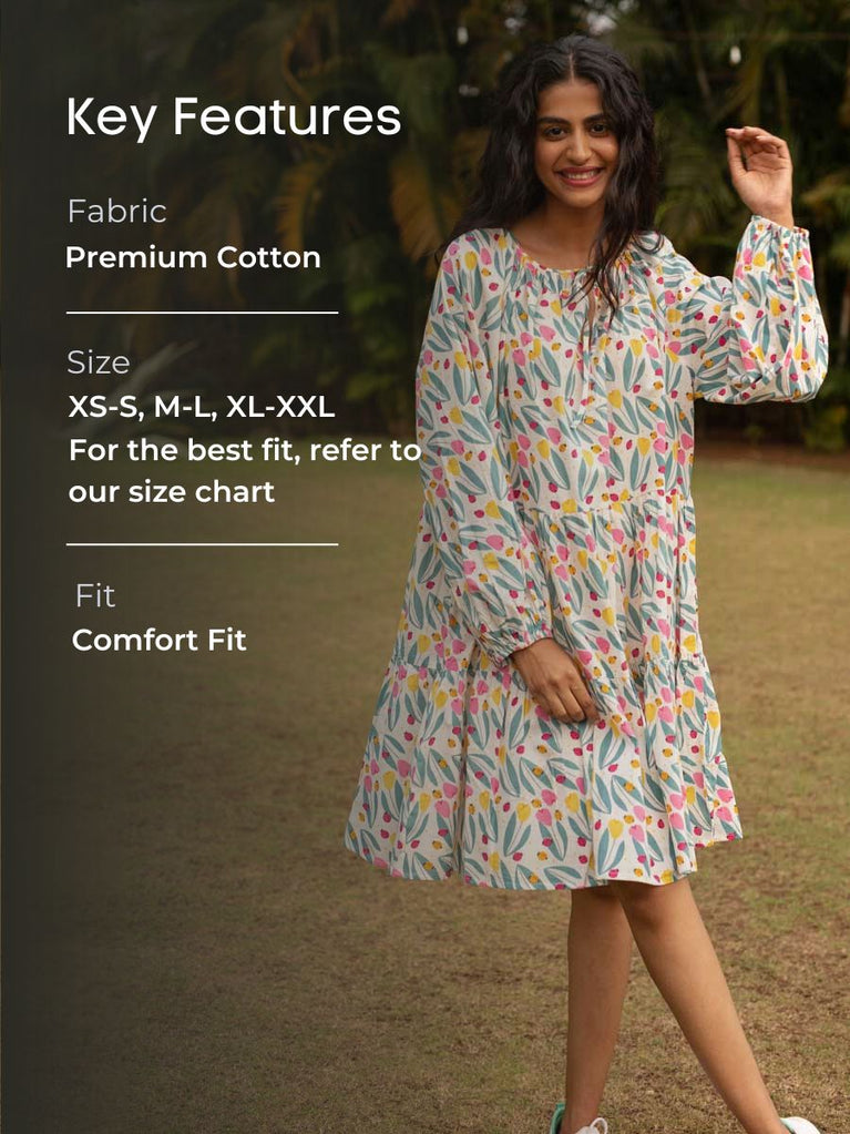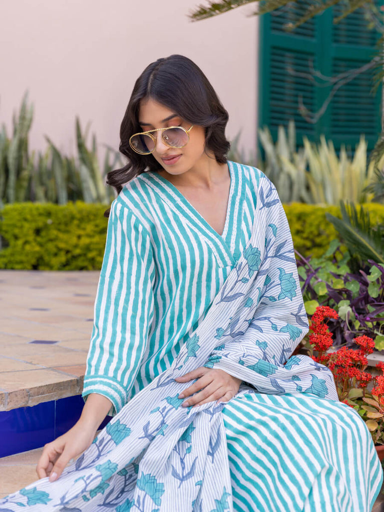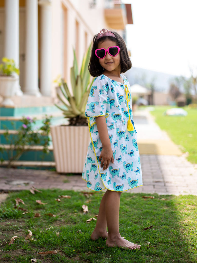 Dino Organic Cotton Block Printed Kaftan for Kids
