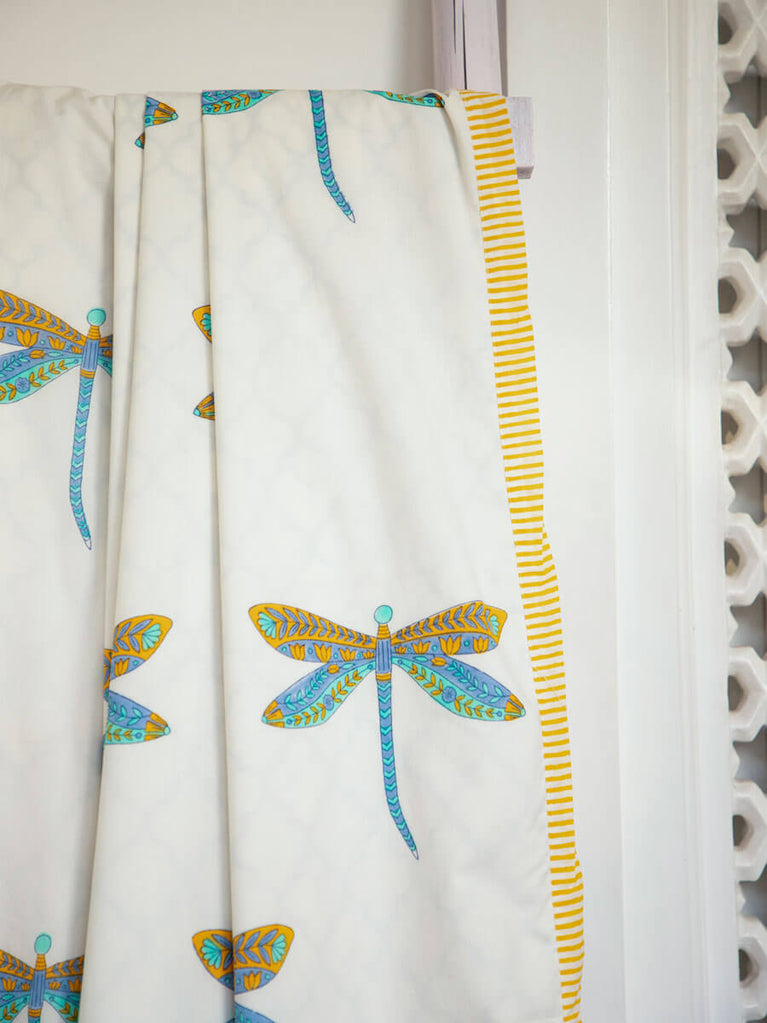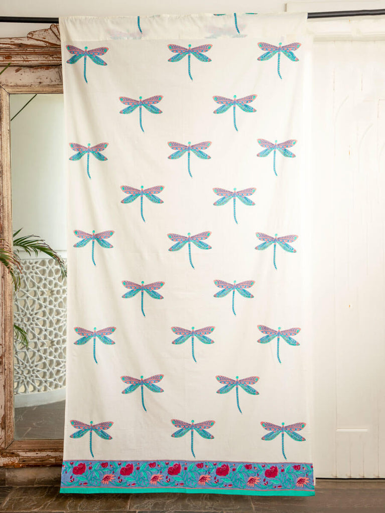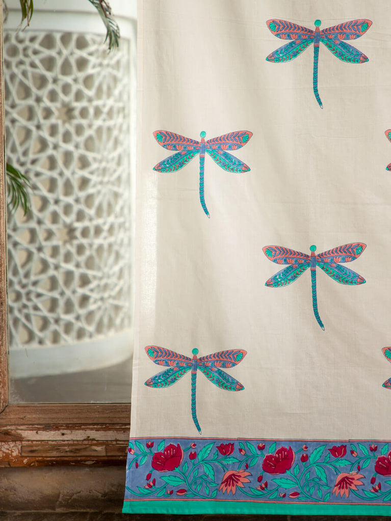 Dragonfly Block Printed Cotton Dhurrie Rug