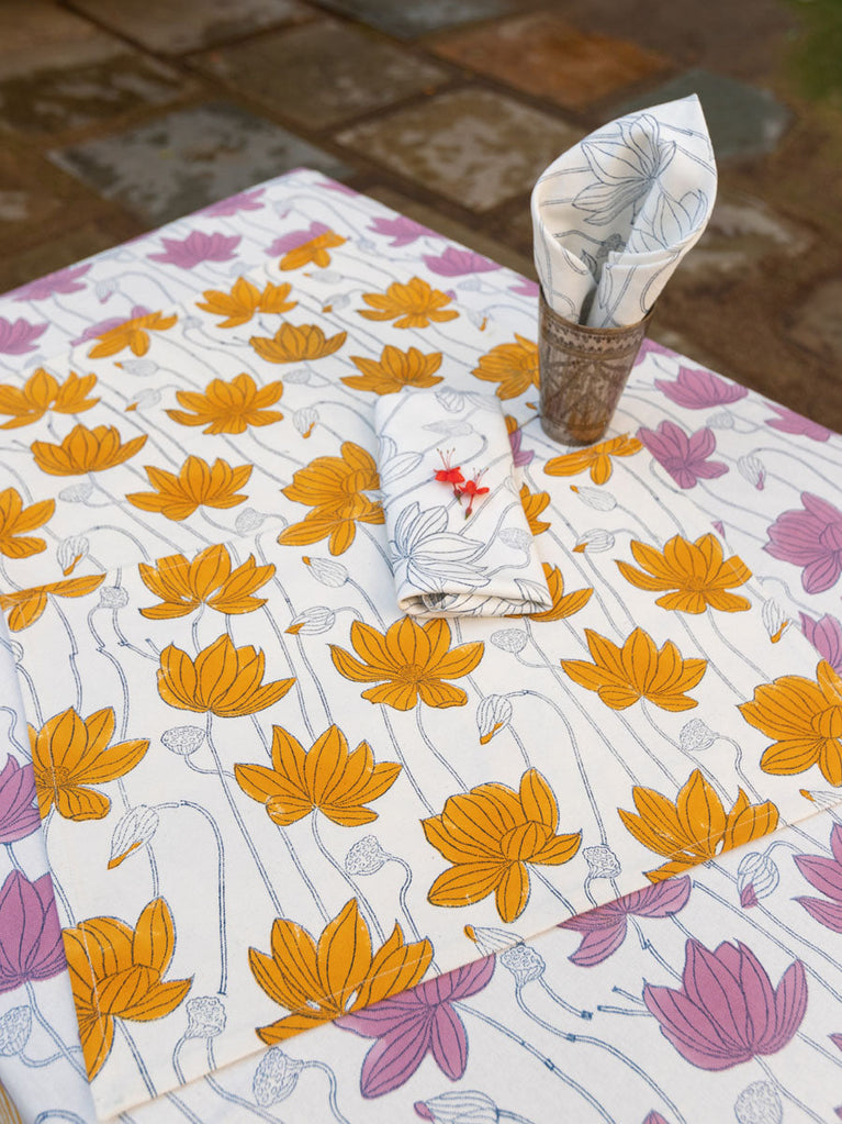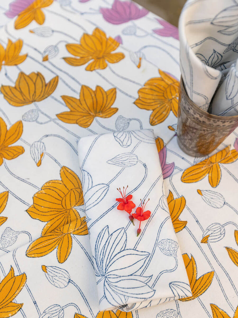 Dancing Lotus Hand Block Printed Cotton Dupatta
