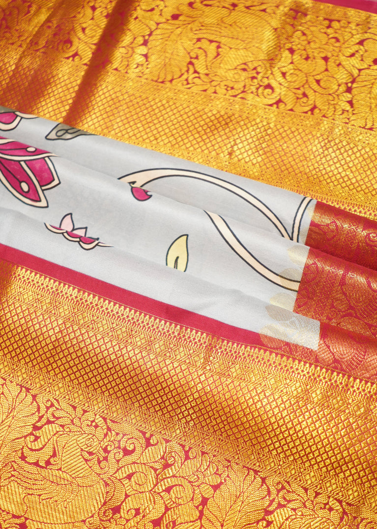 Grey Kanchi Handloom Saree With Kalamkari Design
