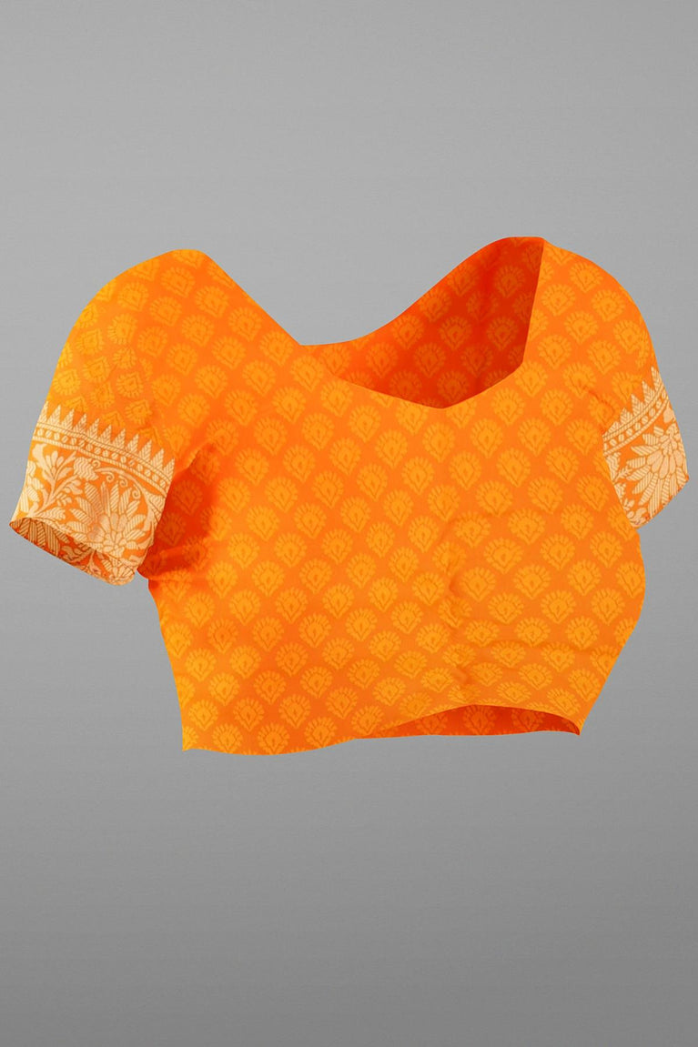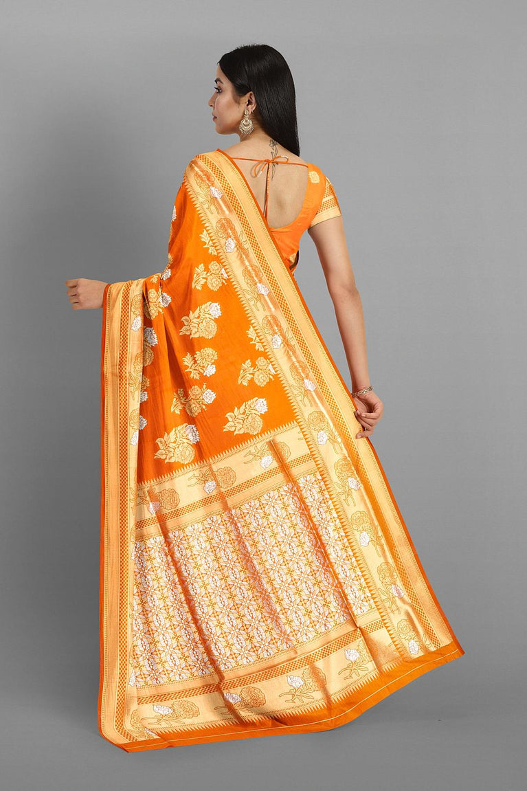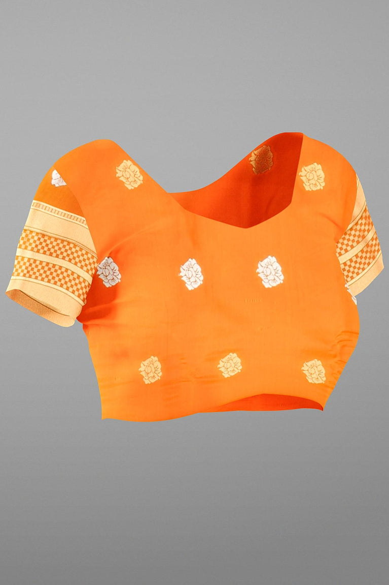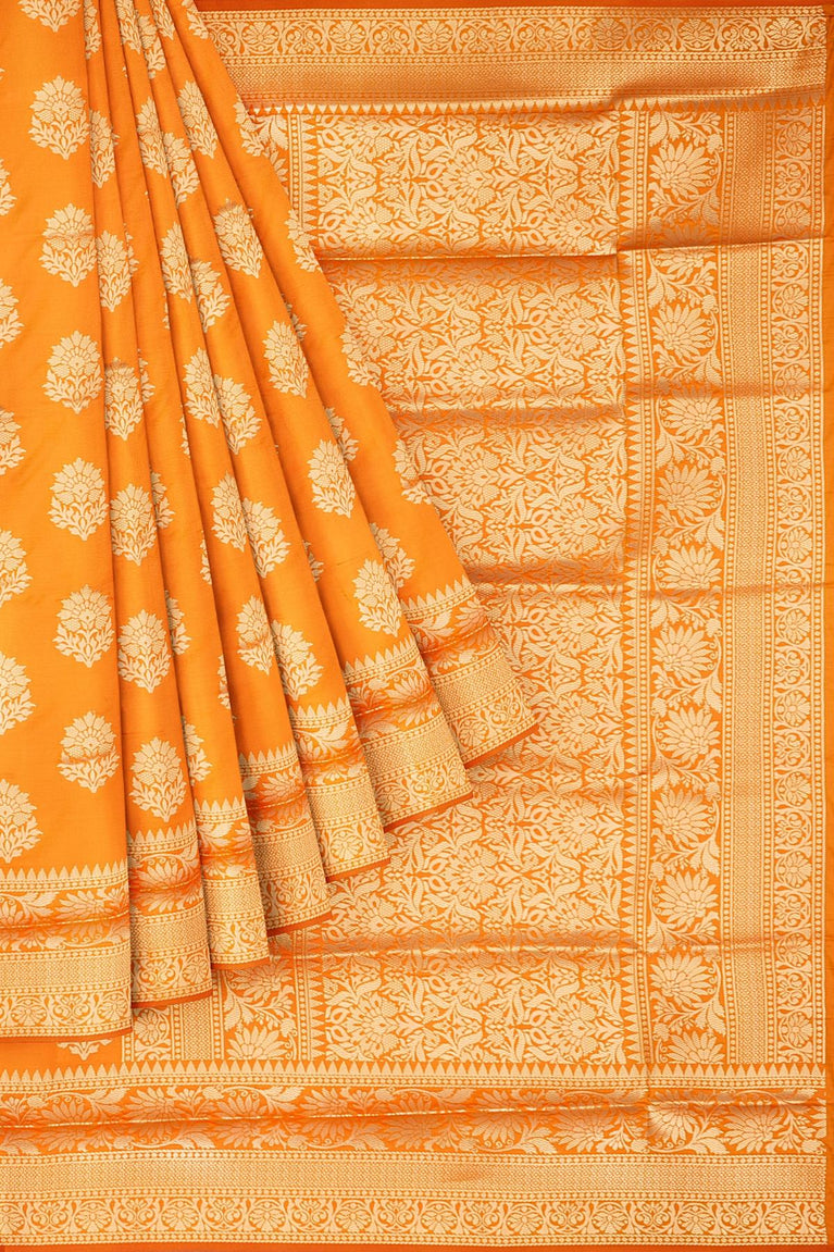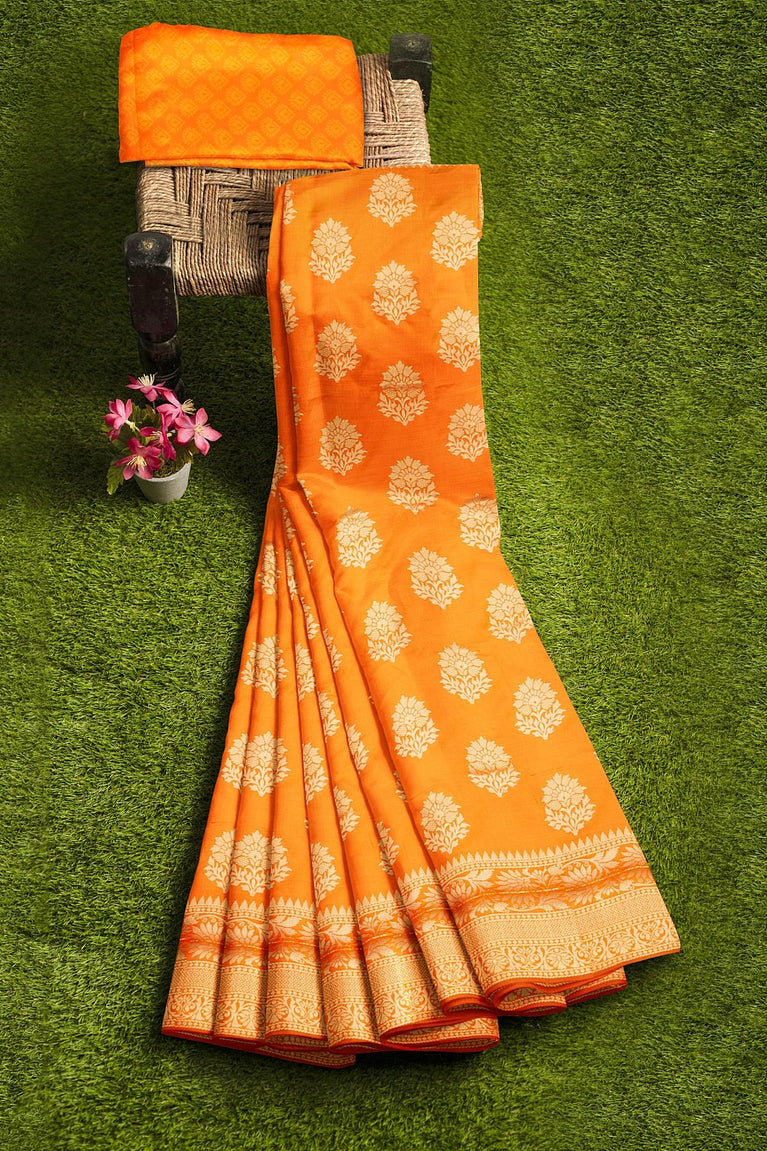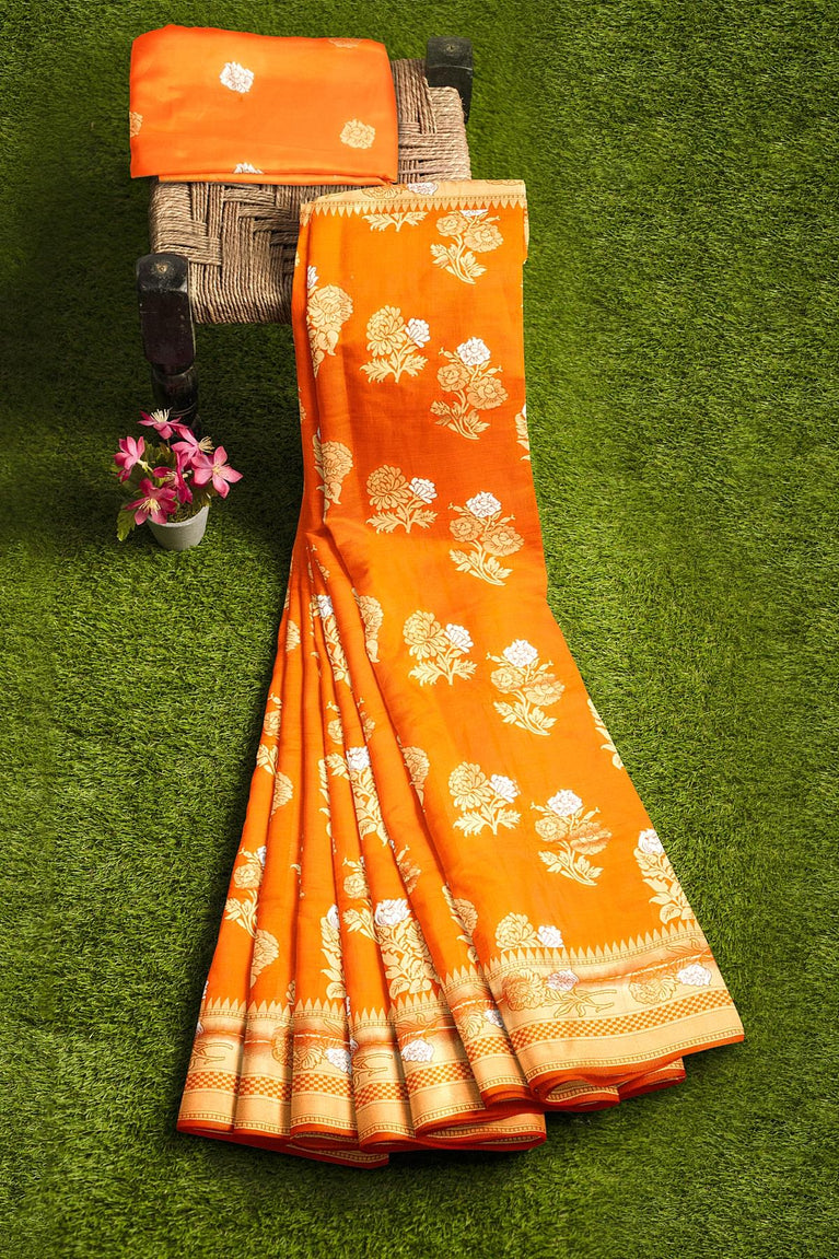 LIGHT ORANGE and GOLD FLORALS SILK BLEND Saree with SEMI PATTU