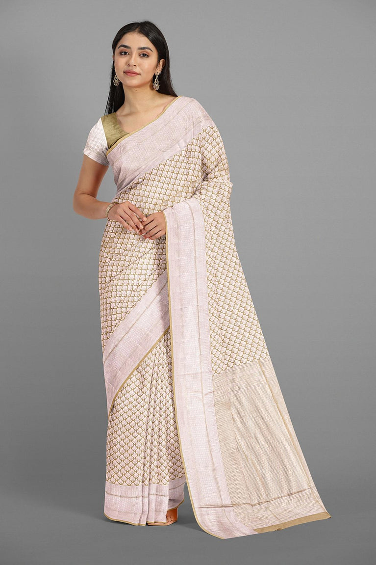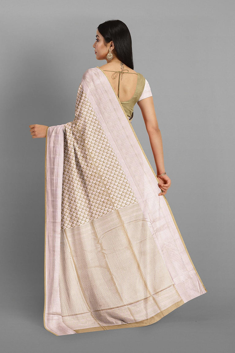 LIGHT PINK and GOLD FLORALS SILK BLEND Saree with SEMI PATTU