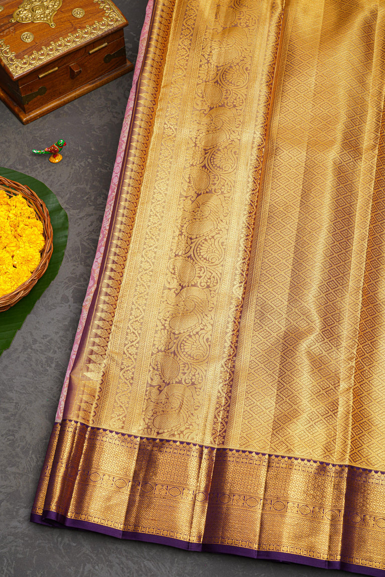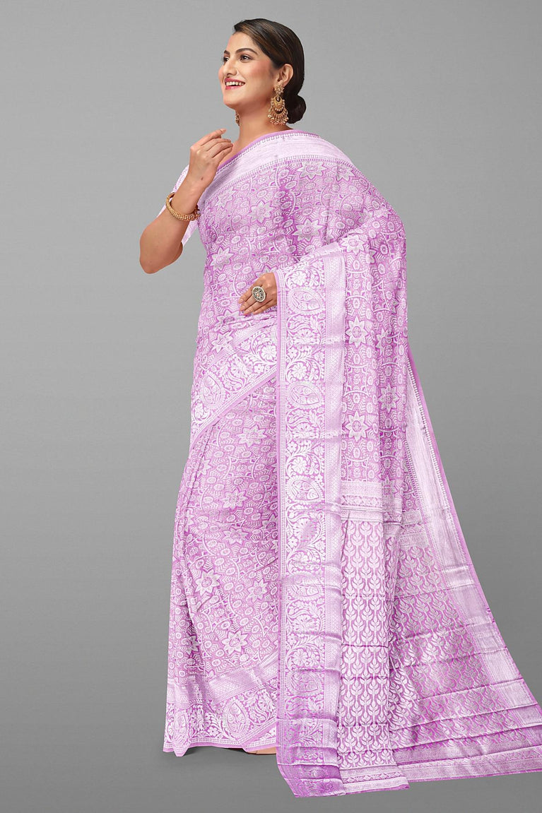 LIGHT PURPLE and RED FLORAL JAAL SILK Saree with KANCHIPURAM