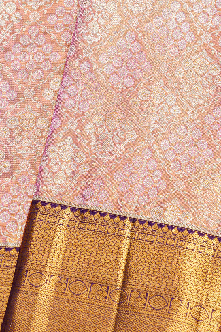LIGHT PINK and SILVER FLORALS TISSUE SILK Saree with SEMI PATTU
