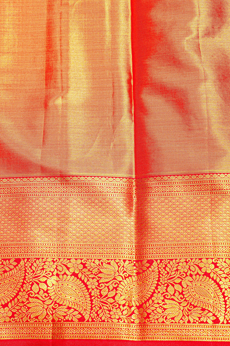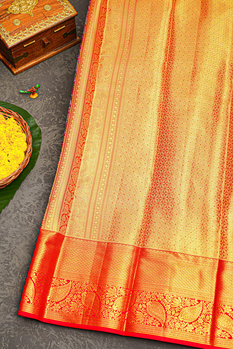 LIGHT PEACH and NAVY BLUE FLORAL JAAL SILK Saree with KANCHIPURAM