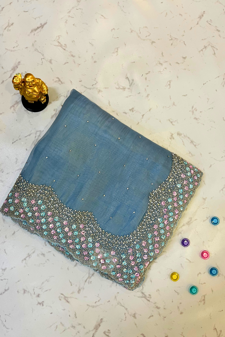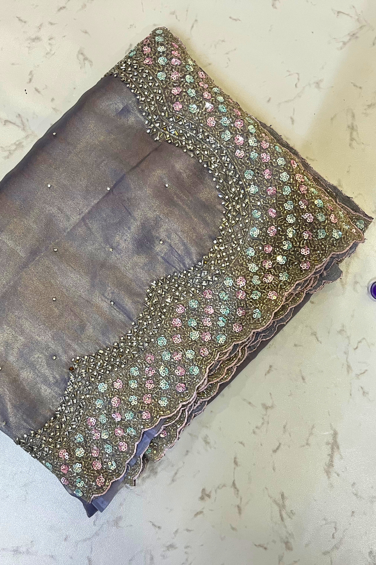 Tissue Saree with Multi-Sequence, Stone & Cutdana Work