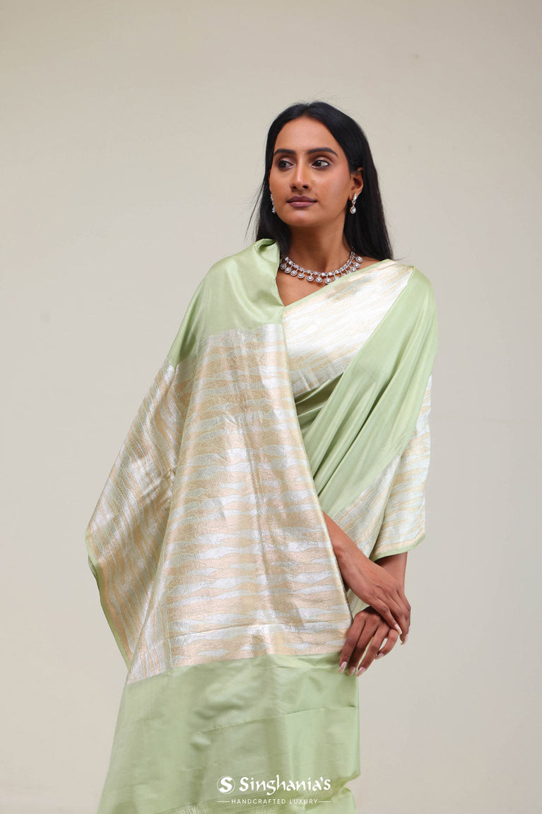 Chinoise Green Satin Banarasi Saree With Statement Border