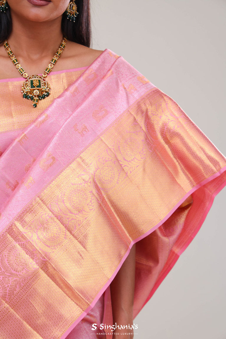 Carnation Pink Kanjivaram Silk Jaal Saree