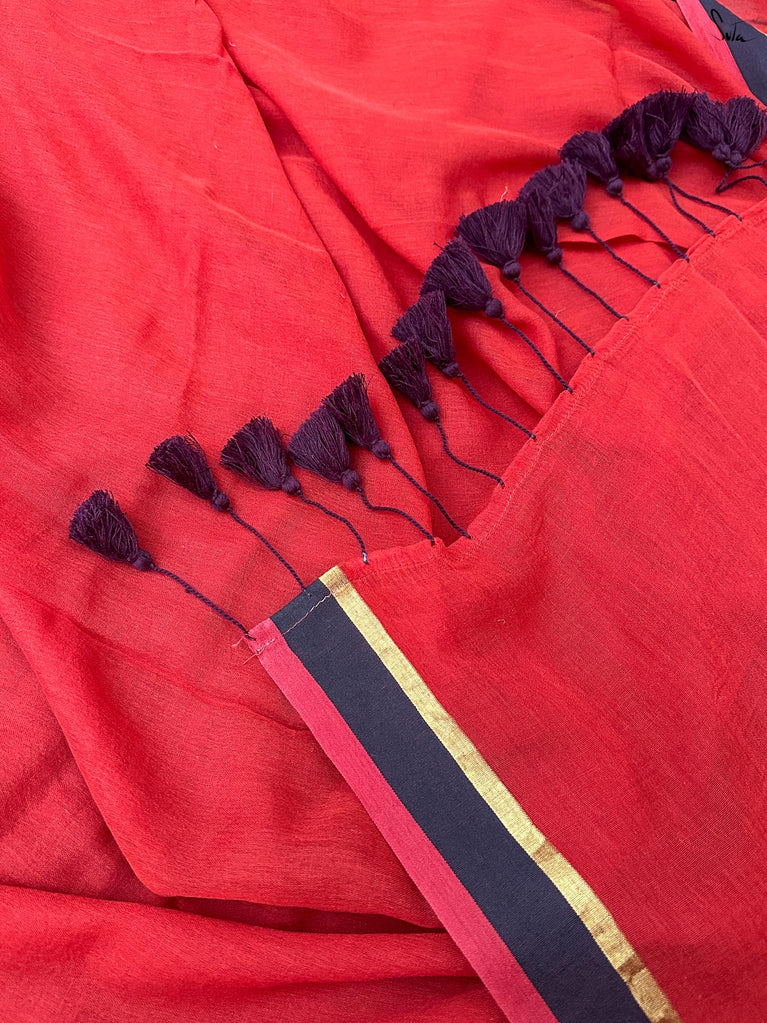 You’re the moon; soft, glowing, impossible to ignore. Inspired by this thought, we designed something that reflects you. This grey mul cotton saree feels peaceful and grounding, like a quiet moment to yourself. The zari-lined border adds just the right amount of shine, while the magenta-accented pallu brings in a soft pop of brightness. The contrast of grey and magenta tassels ties it all together with thoughtful detail. It’s perfect for slow festive mornings, quiet rooftop evenings, or cozy, intimate gatherings.