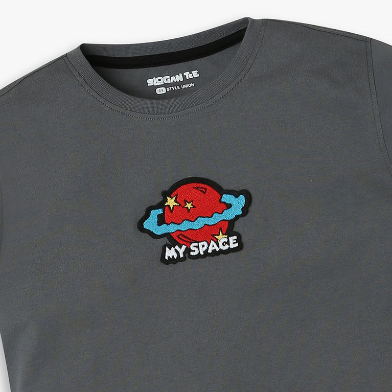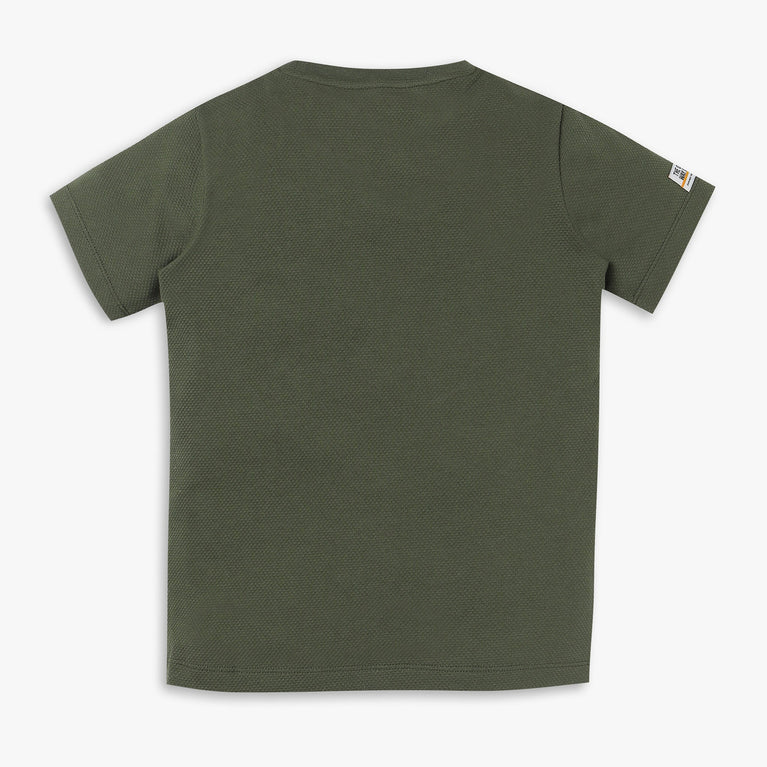 These solid pattern t-shirt has crew neck and half sleeve. Made from cotton, your kid's feel comfortable wearing the product.