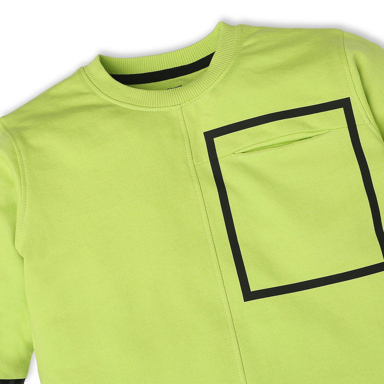 These solid pattern t-shirt has crew neck and full sleeve. Made from cotton polyester, your kid's feel comfortable wearing the product.