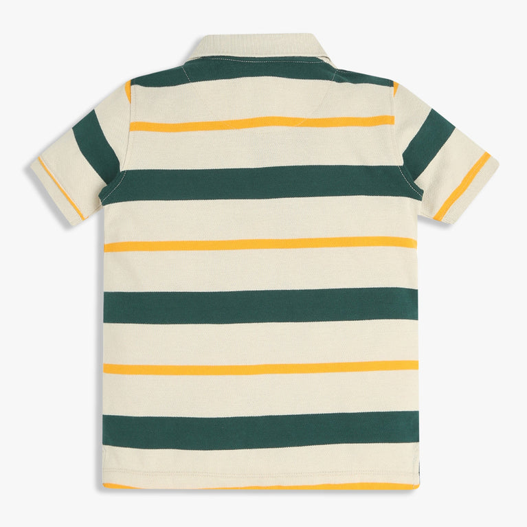 Experience the perfect blend of comfort and style with our Boys Striped Polo T-Shirt. Crafted from a soft cotton-polyester blend, this t-shirt ensures all-day comfort while maintaining its shape and color. The classic striped pattern adds a touch of timeless fashion, making it a versatile choice for any occasion.