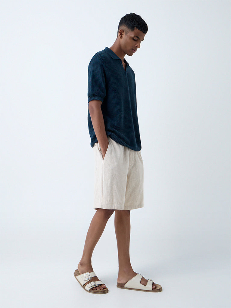 ETA Dark Teal Knit-Textured Relaxed-Fit Polo T-Shirt