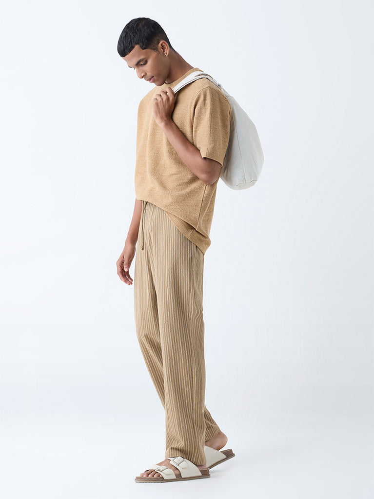 ETA Beige Woven-Textured Relaxed-Fit Cotton T-Shirt