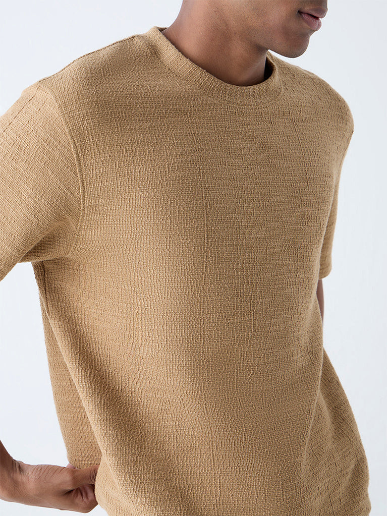 ETA Brown Knit-Textured Relaxed-Fit Cotton T-Shirt